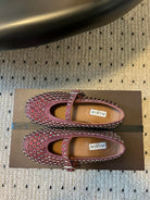 Alaia 25 Strass Ballet Flats Garnet Red Suede Goatskin 303725