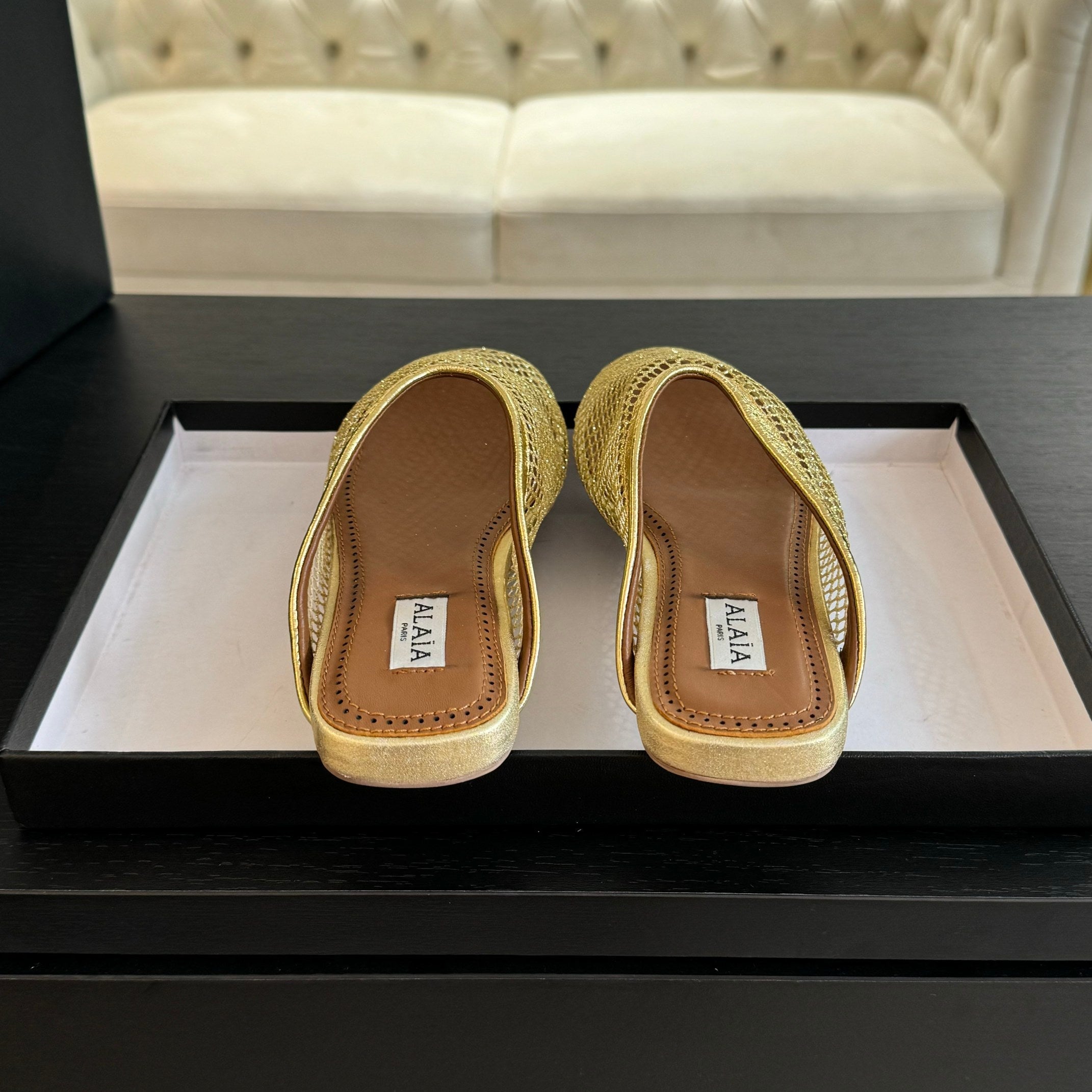 Alaia 2025 Oeillets Embellished Leather Sandals Denim Lambskin 299670