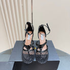 Alaia Fishnet Thong Heels Sandals Black Lambskin 299658