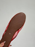 ALAIA FLAT MULES IN CHERRY RED MESH FISHNET