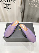 ALAIA FLAT MULES IN LIGHT PURPLE MESH FISHNET