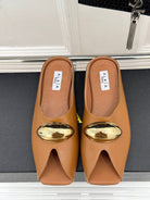 Alaia Slipper With Gold Hardware Brown Calfskin 293202