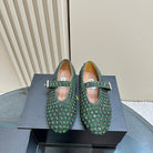 Alaia Strass Suede Ballet Flats In Dark Green 999318