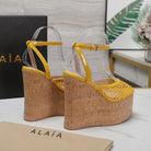 ALAIA WEDGE SANDAL IN YELLOW MESH AND BEIGE RUBBER