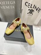 Alaila Biker Ballet Flats In Light Yellow Cowhide 911436