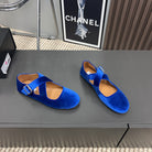 Alaila Criss Cross Ballet Flats In Blue Velvet 996045