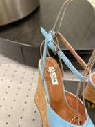 Alaila Wedge Sandals 115mm In Light Blue Glossy Lambskin 954883