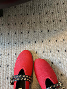 ALAIA MARY JANE SHOES IN CHERRY RED ZP CUSTOM STRAW AND DENIM