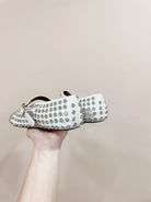 ALAIA MARY JANE SHOES IN WHITE LAMBKIN ATTACH RHINSTONES