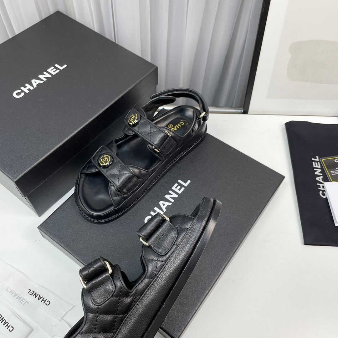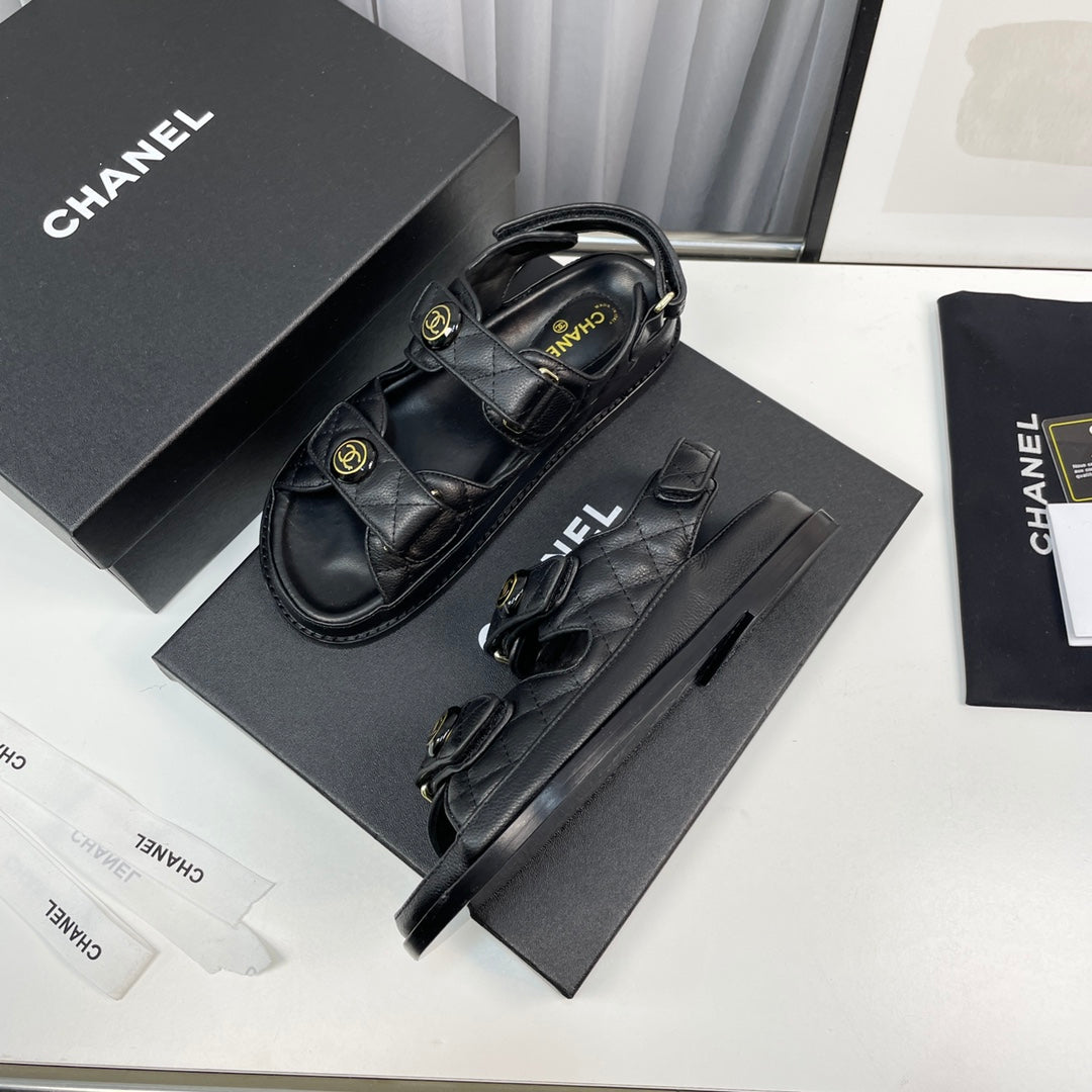 CC DAD SANDALS THREE STRAP BLACK LAMBSKIN