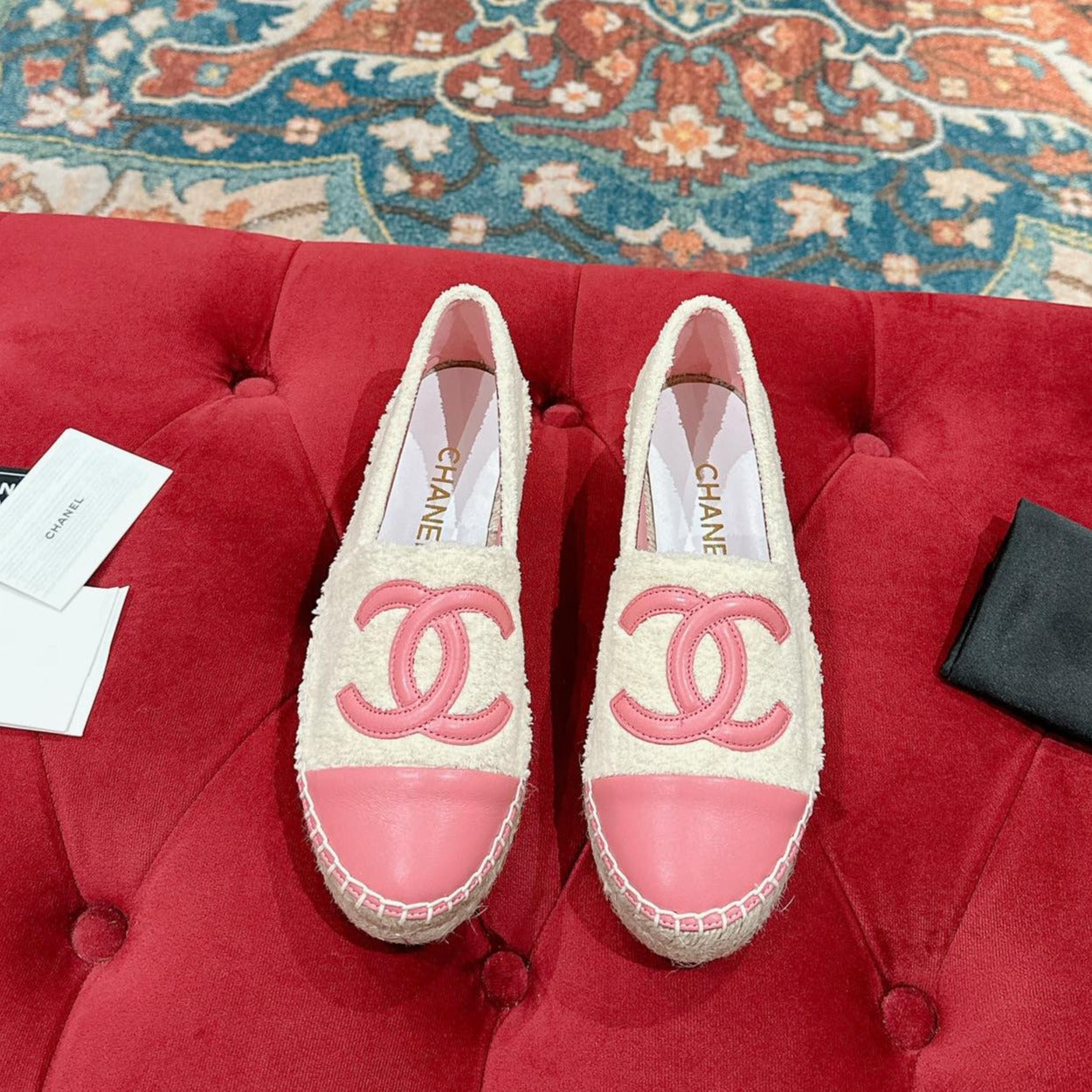 cc espadrilles beige fleece fabric pink calfskin