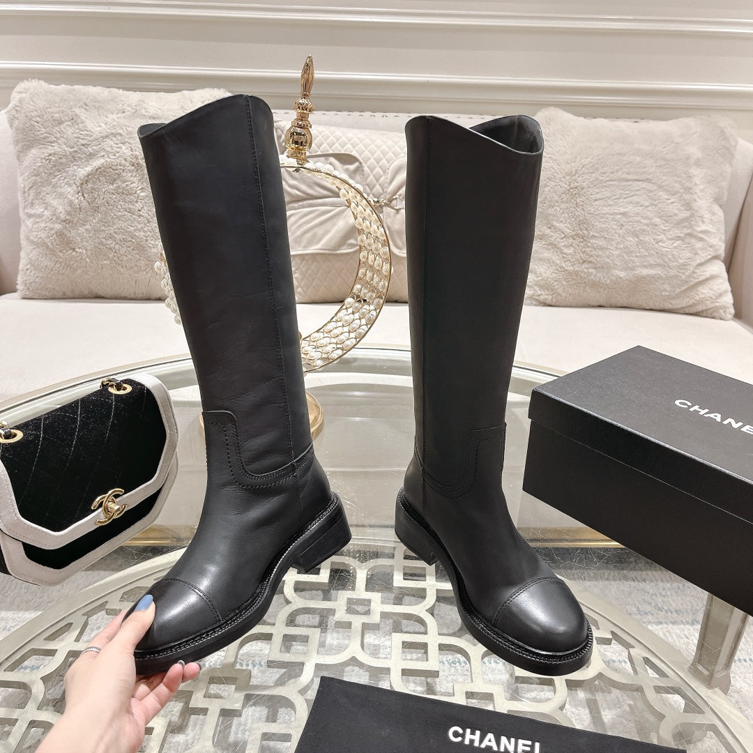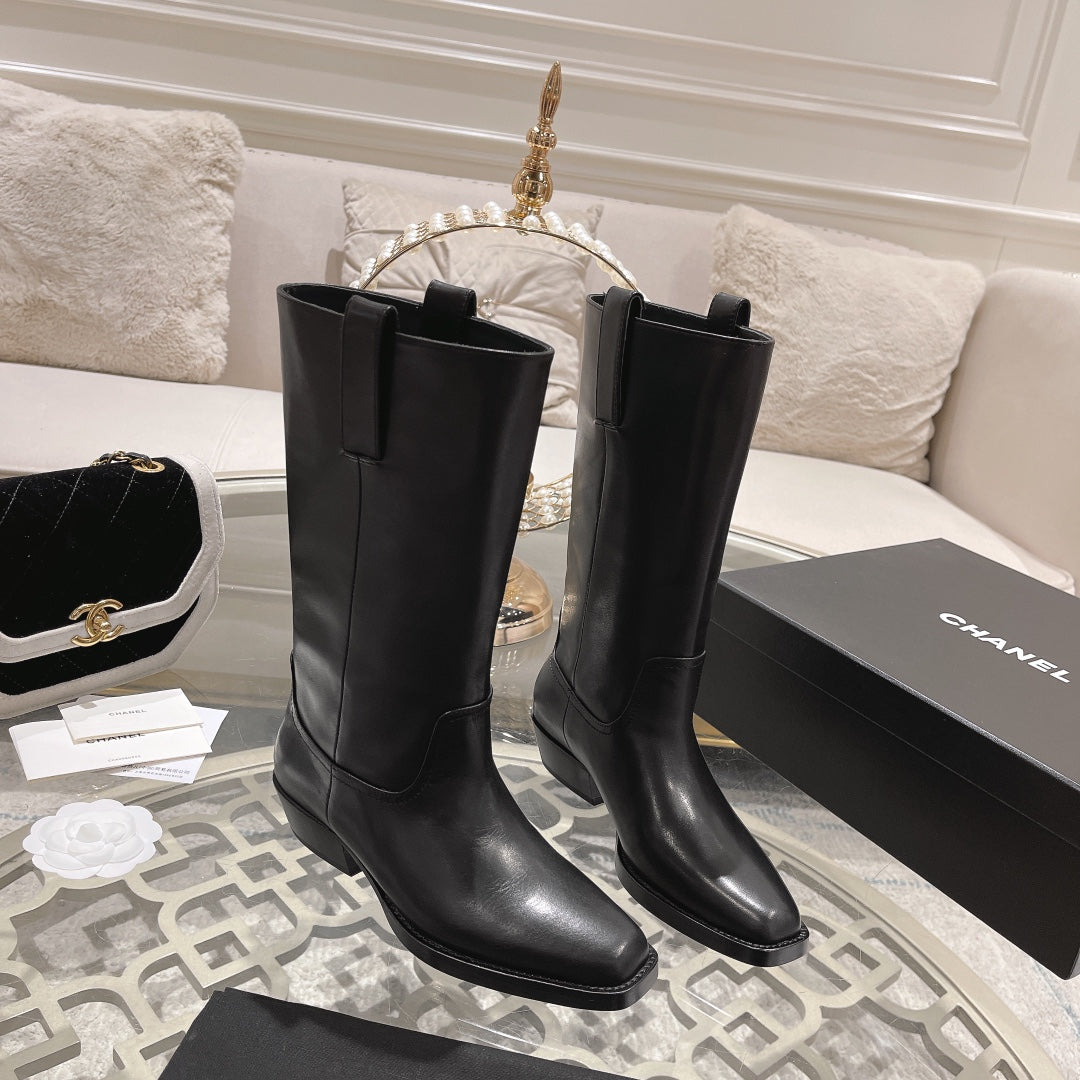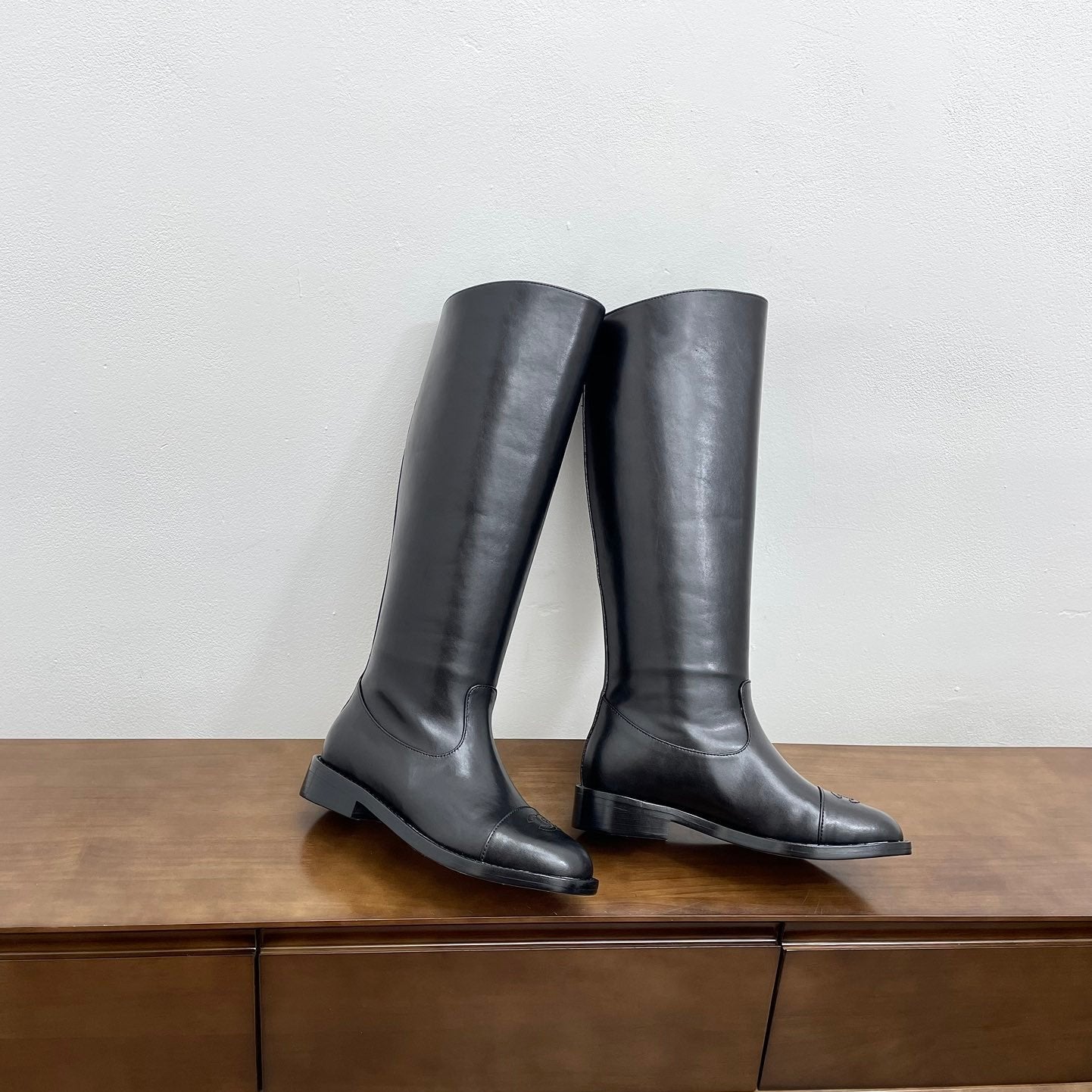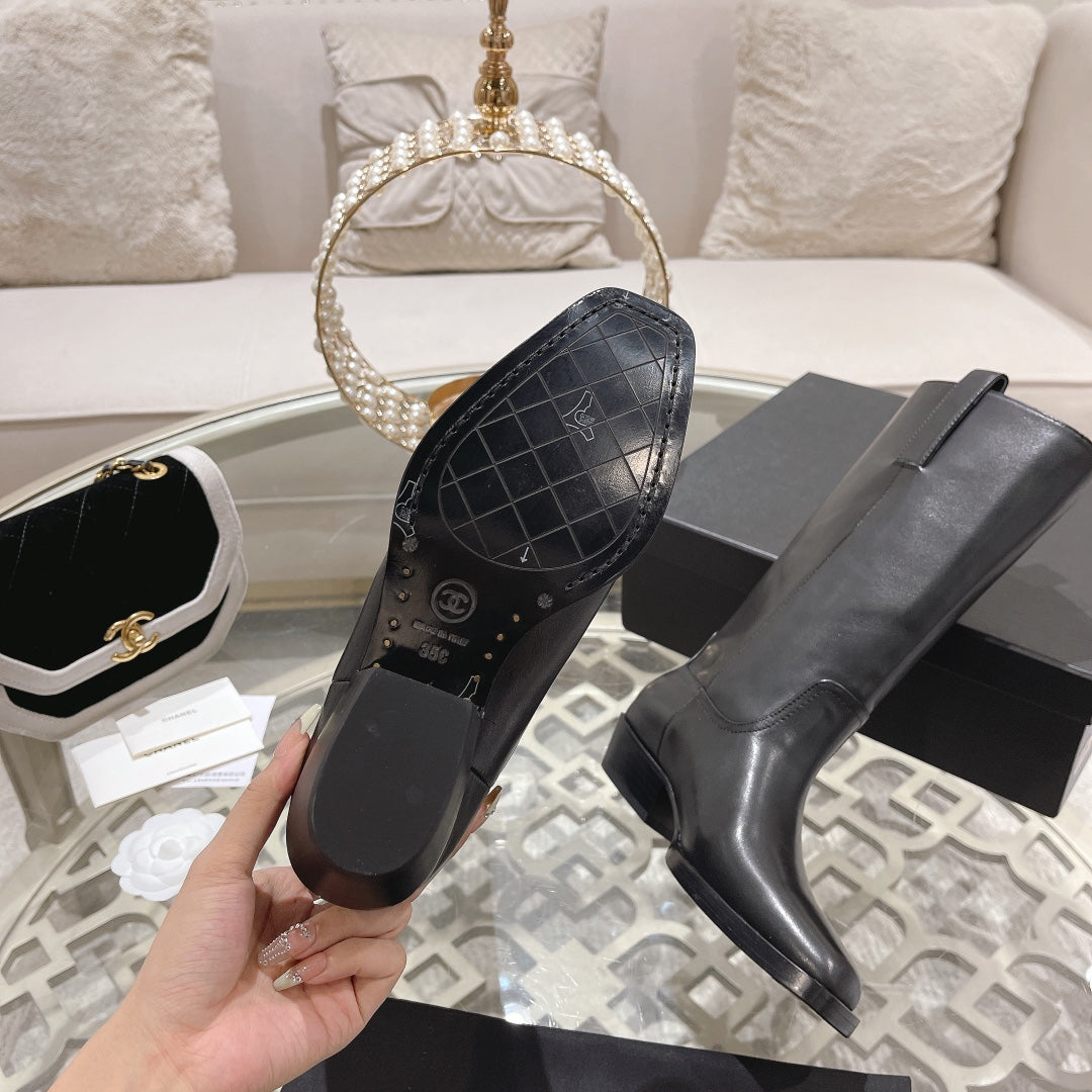 CC High Boots 40mm In Plain Black Mix Glossy Black Quilted Calfskin 949749