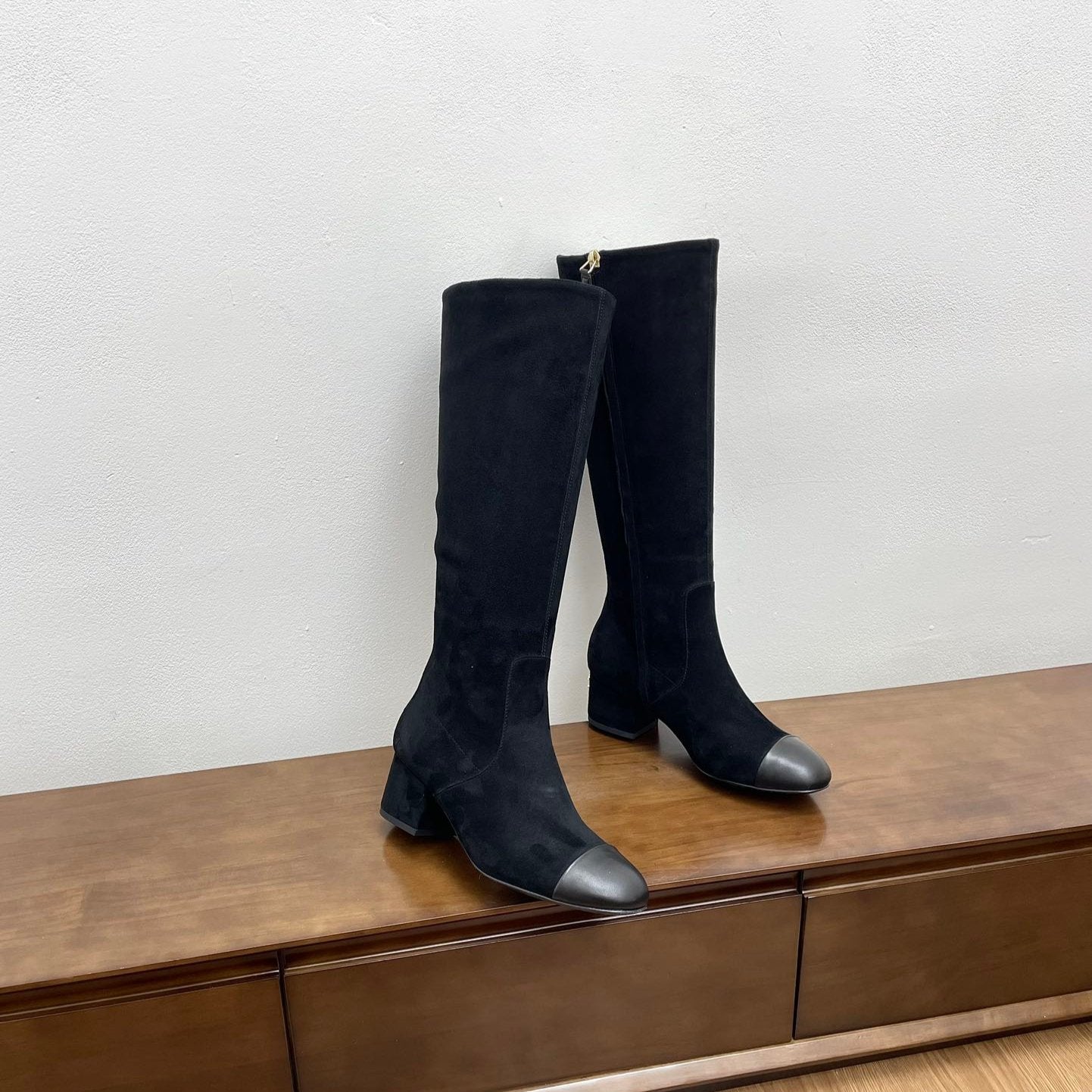 CC High Boots 45mm Plain Black Calfskin And Suede
