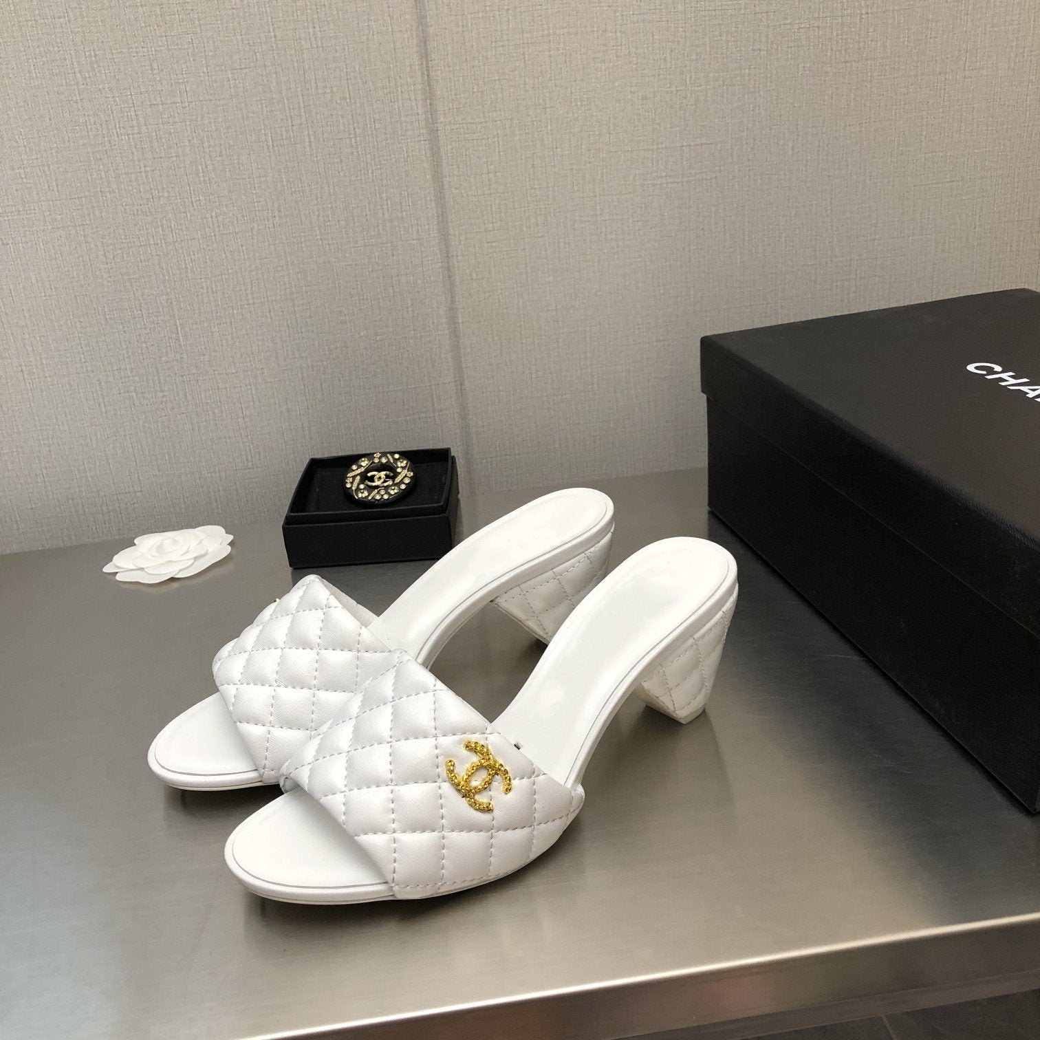 cc rev cone heel mule slide sandal white quilted lambskin 6cm