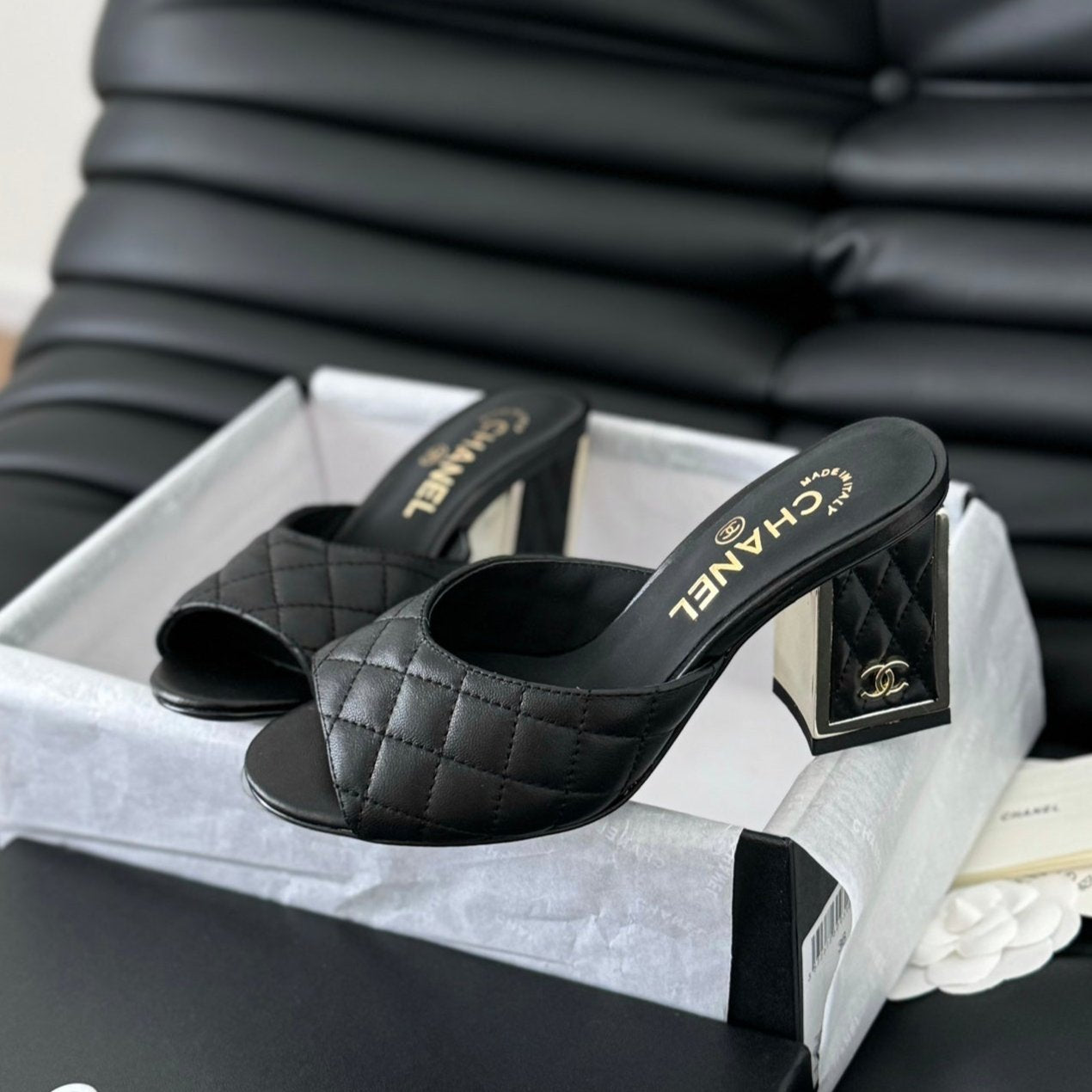 cc rev cone heel mule slide sandal black quilted lambskin 6cm