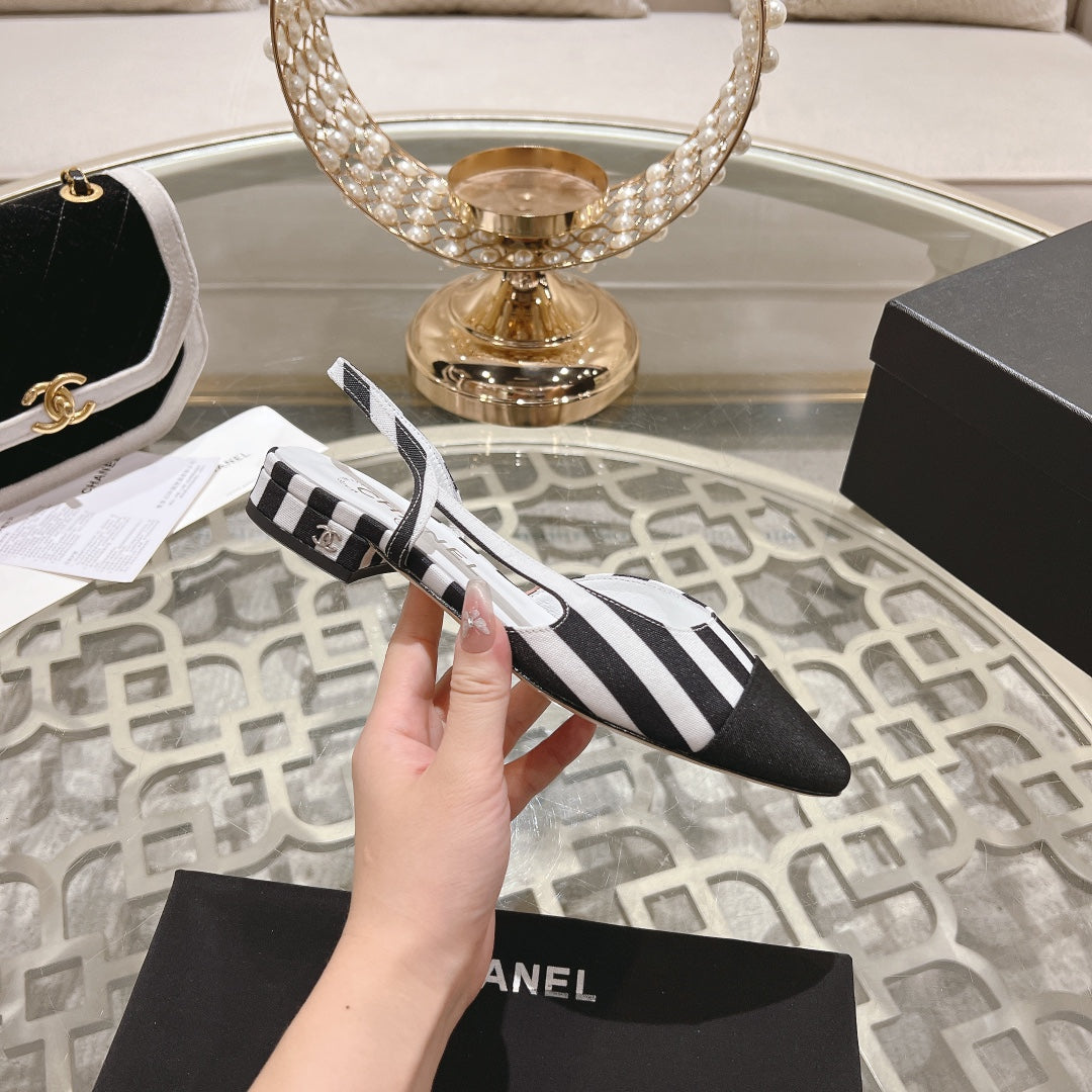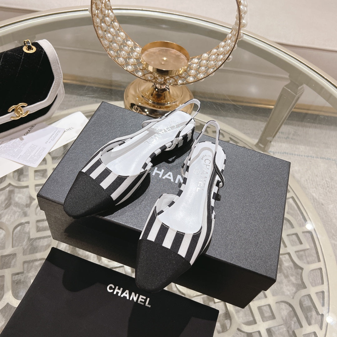 cc slingback sandal tripe strap 60 black canvas calfskin