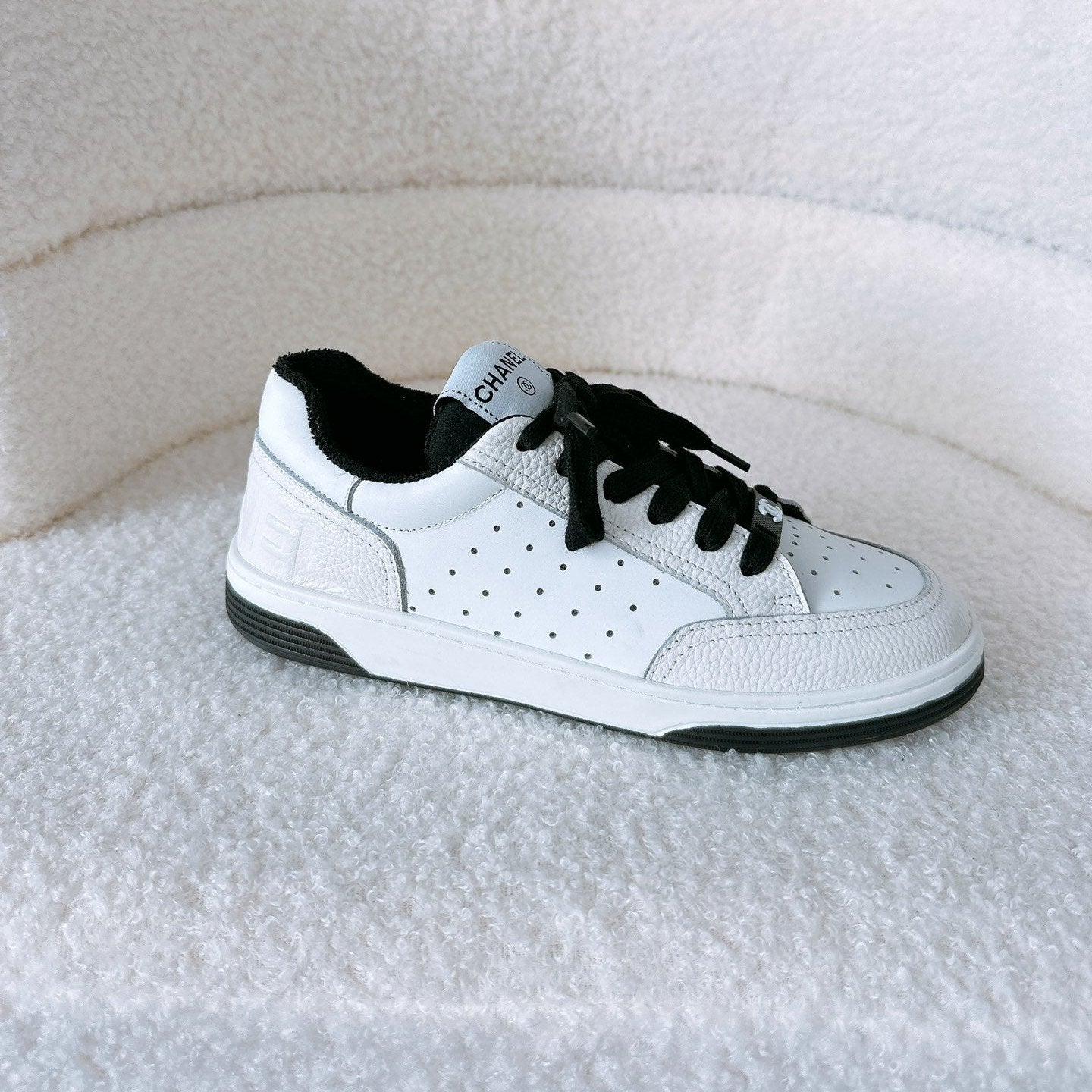 CC SNEAKER IN BLACK MIX WHITE EMBROIDERED LAMBSKIN