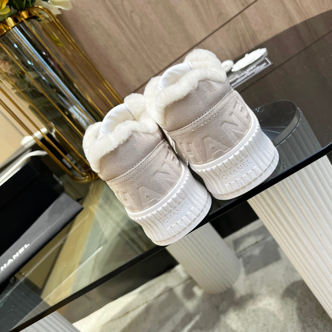 CC Sneaker Thick-Soled Beige Suede Wool Lining Fleece