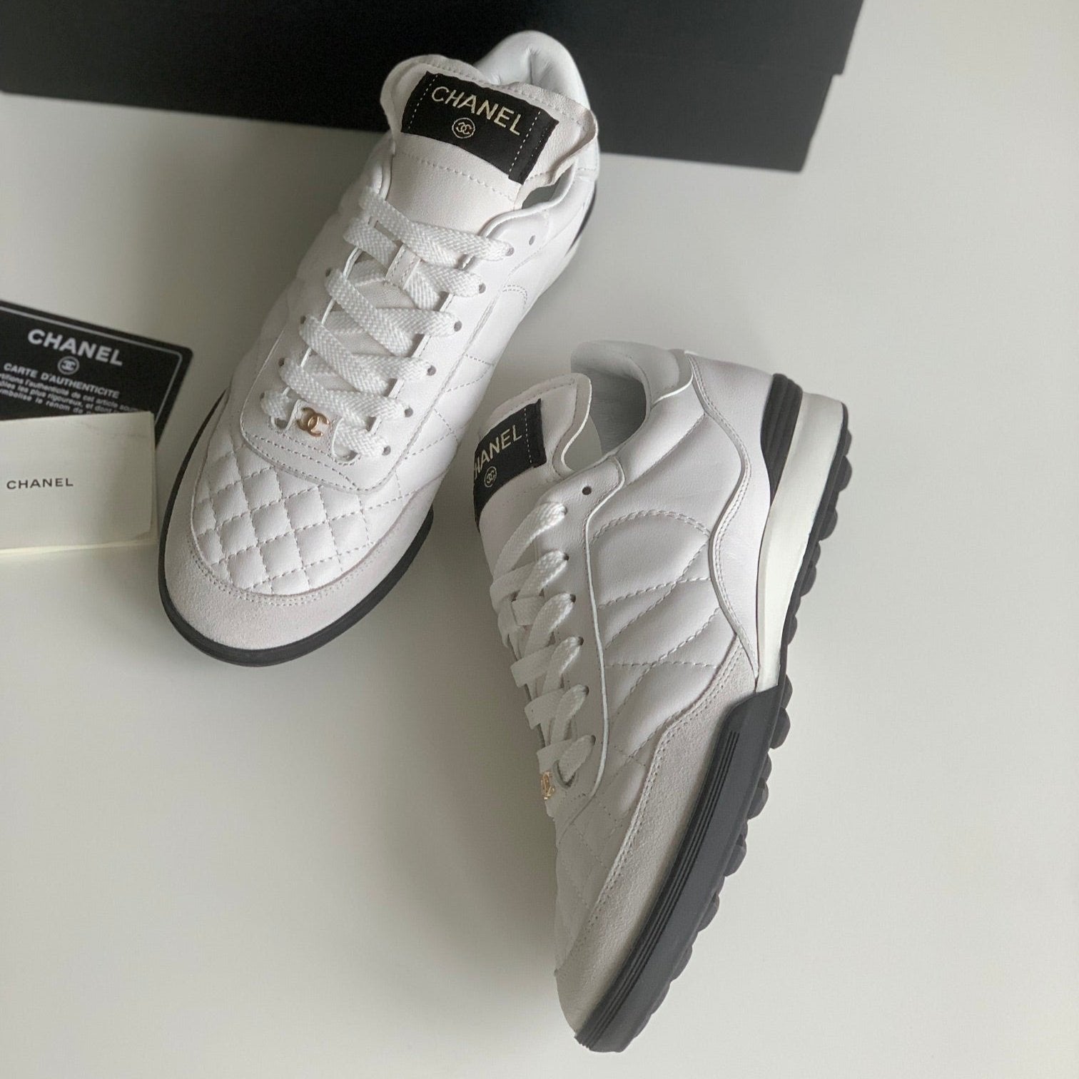 CC SNEAKER IN WHITE CALFSKIN AND SUEDE