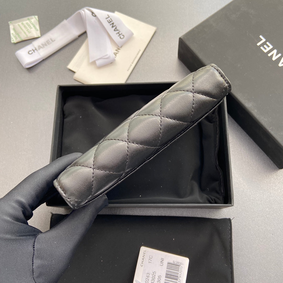 CC Wallet On Chain 20cm Black Lambskin Light Gold Hardware 240166