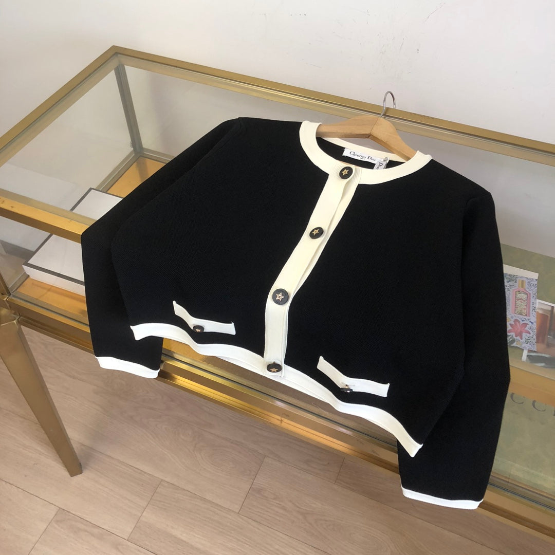 CD 25 Knitted Round Neck Cardigan Black White Mohair wool 210006