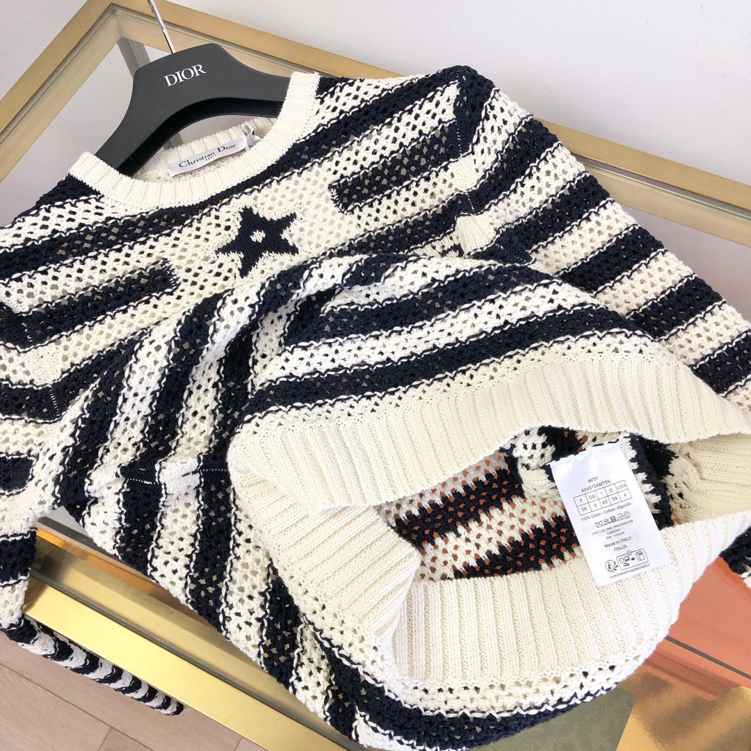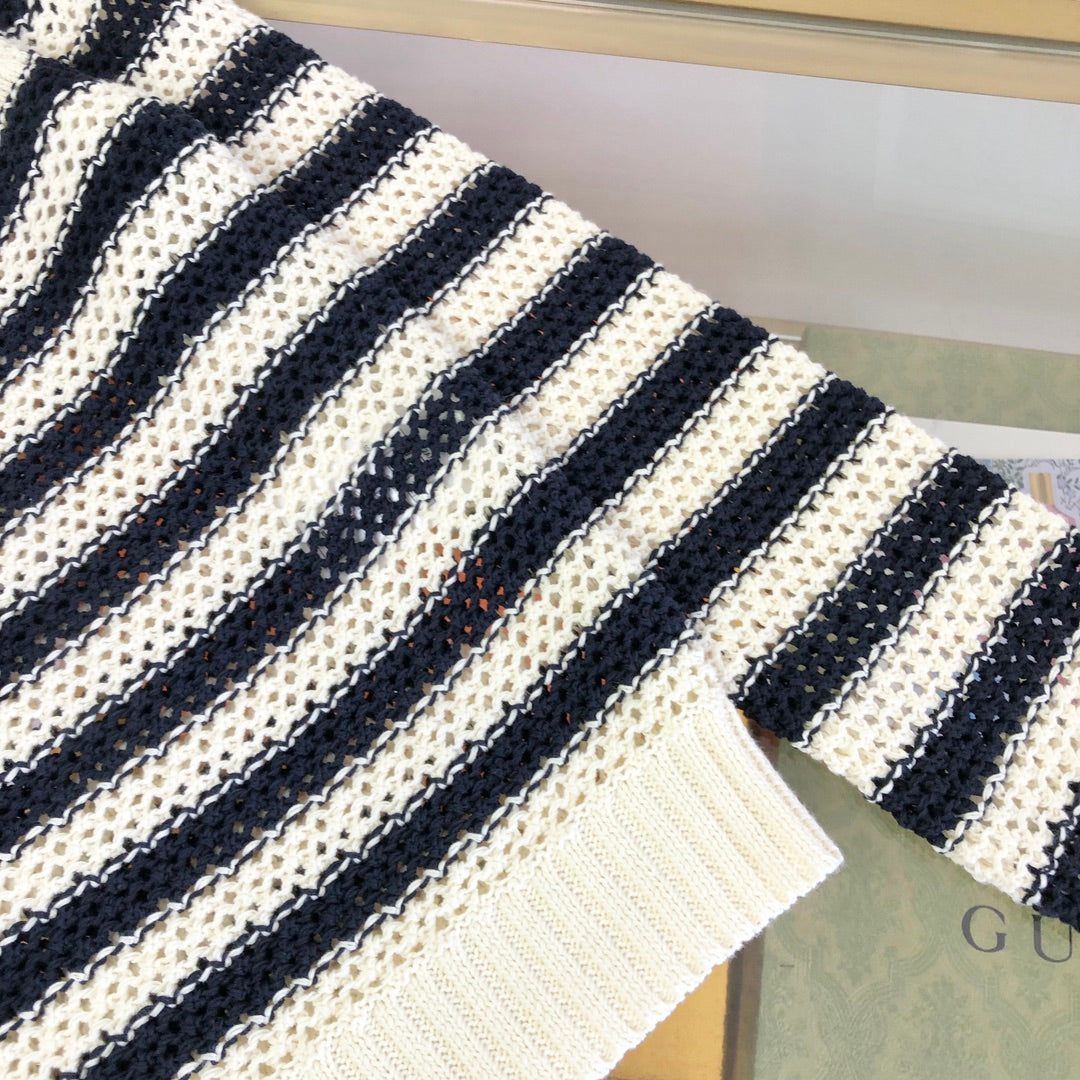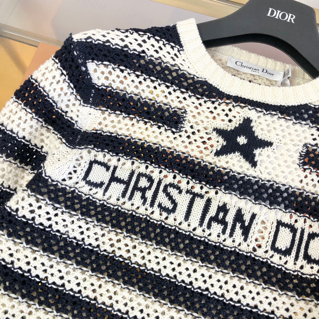 CD 25 Knitted Short-sleeved Top Blue and White Cotton