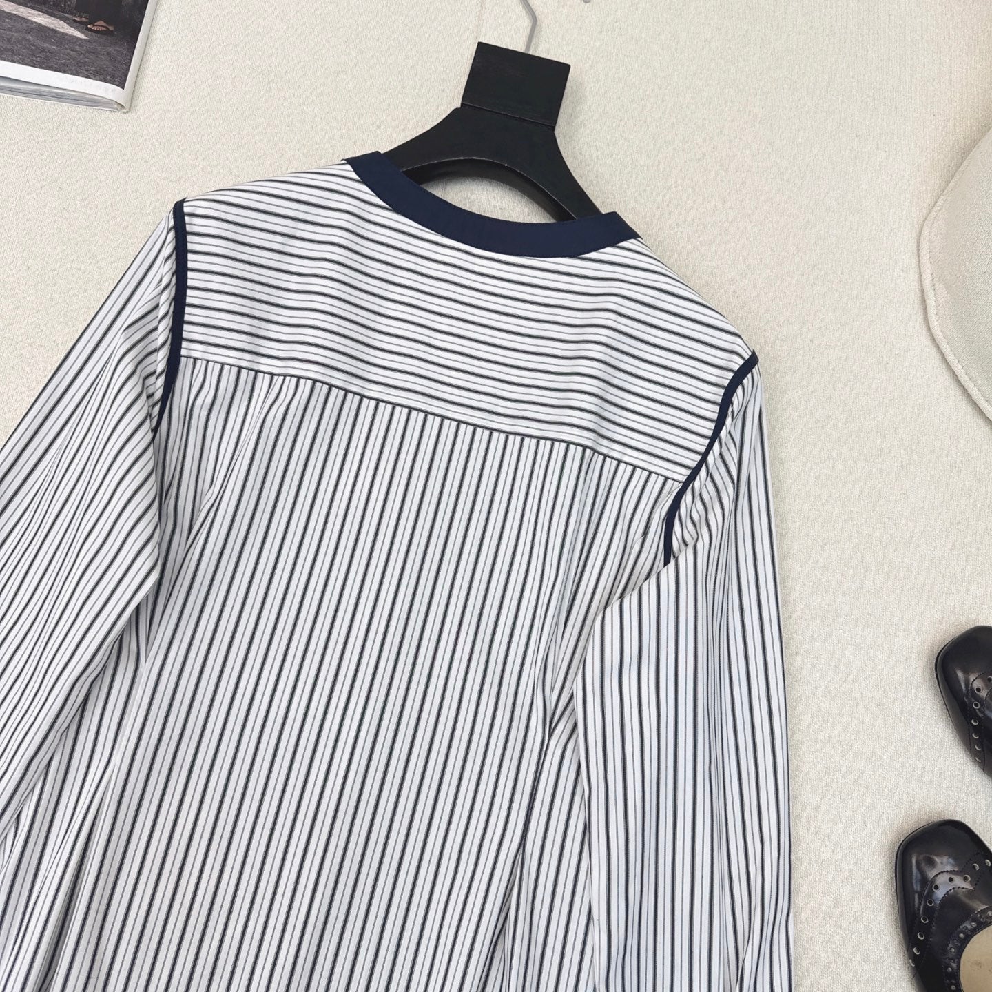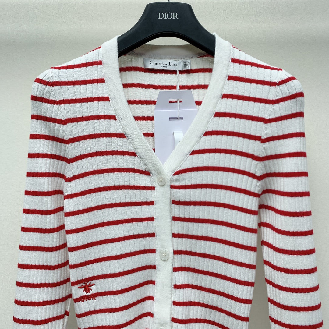 CD 25 Striped Knitted Long-sleeved Top Black Cotton