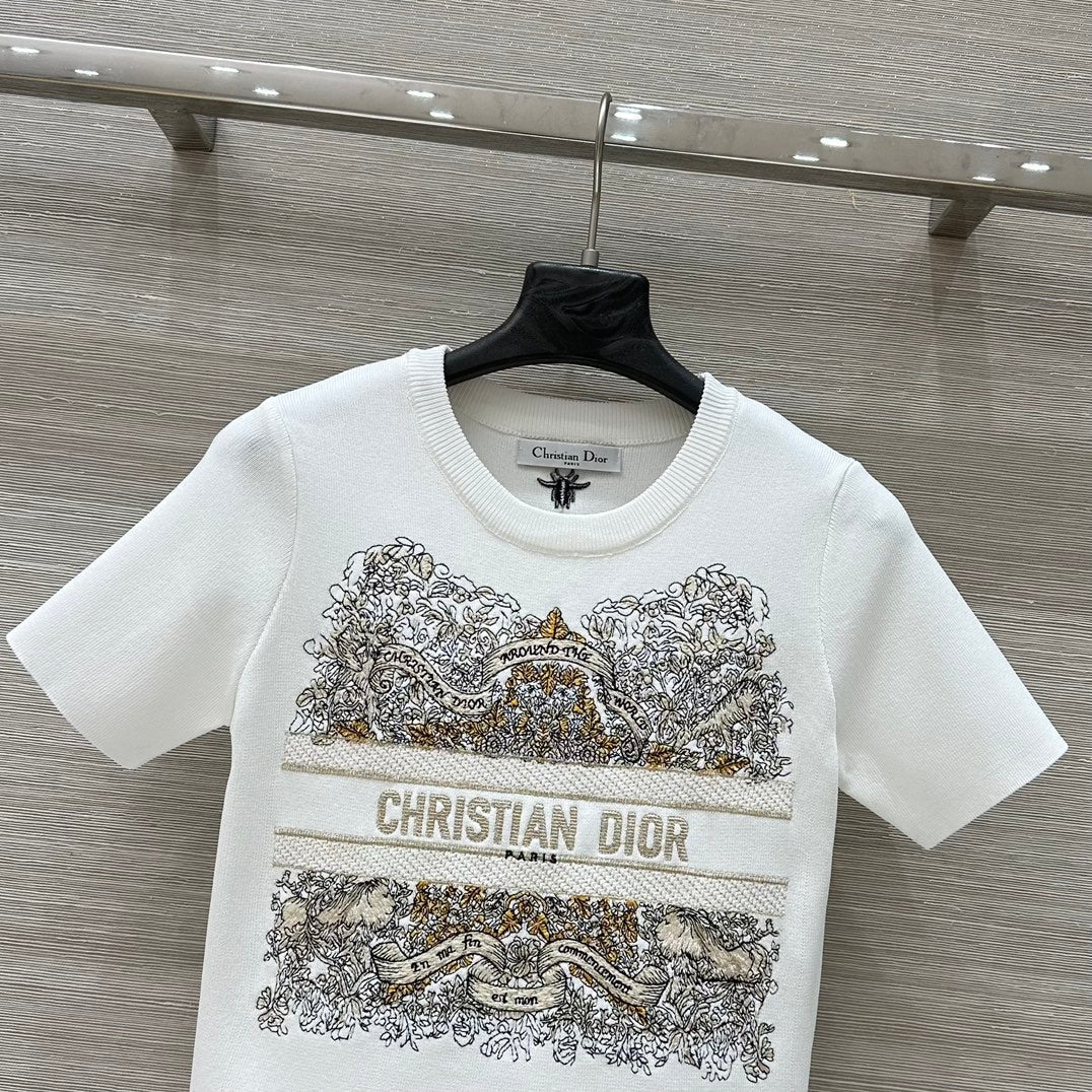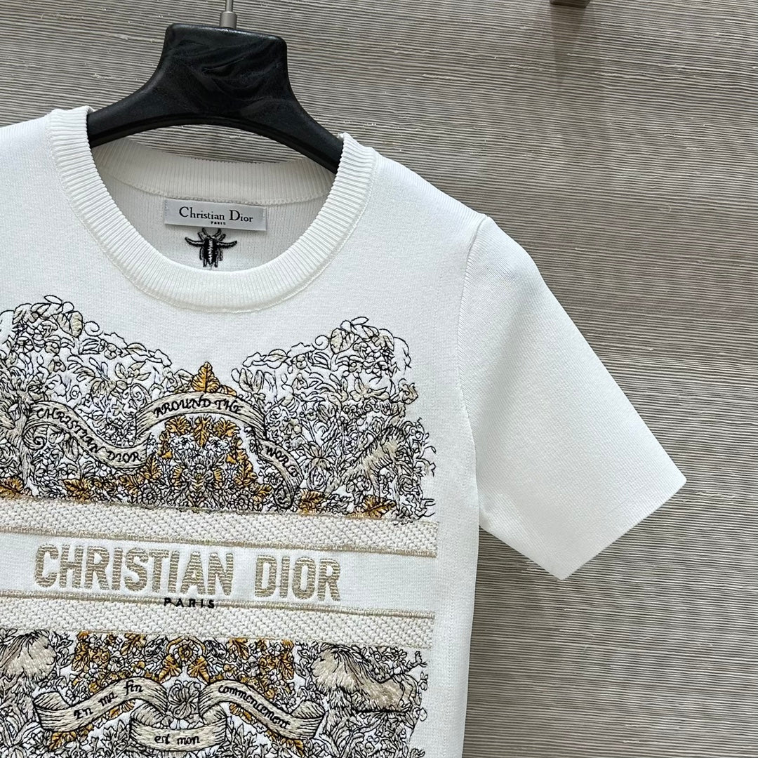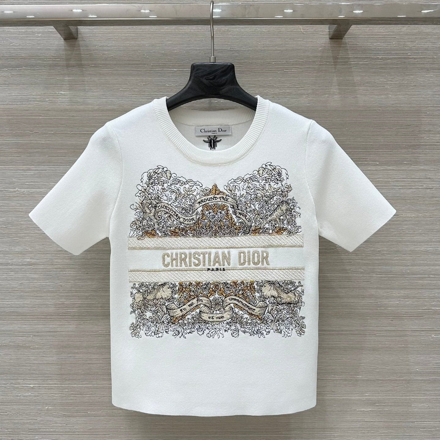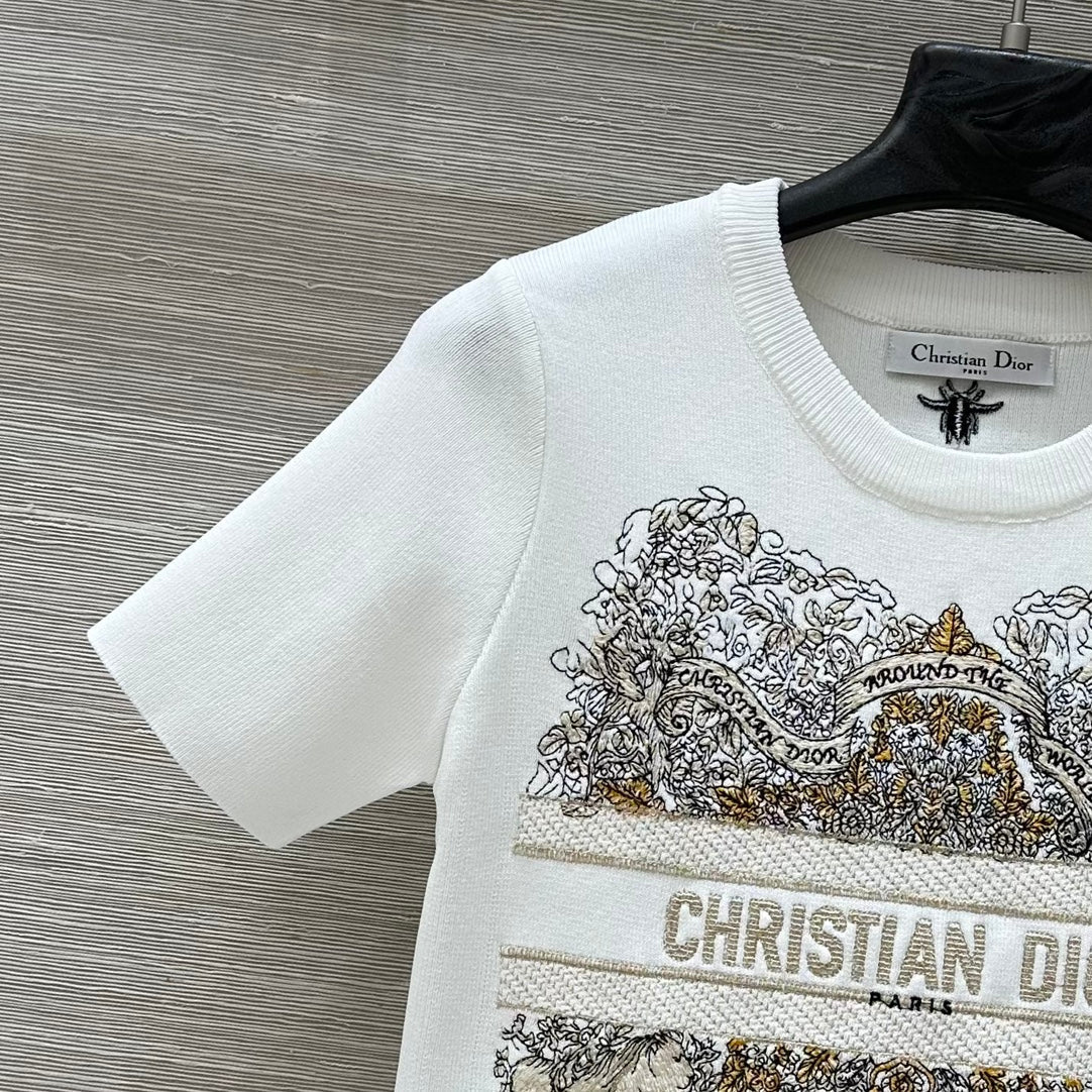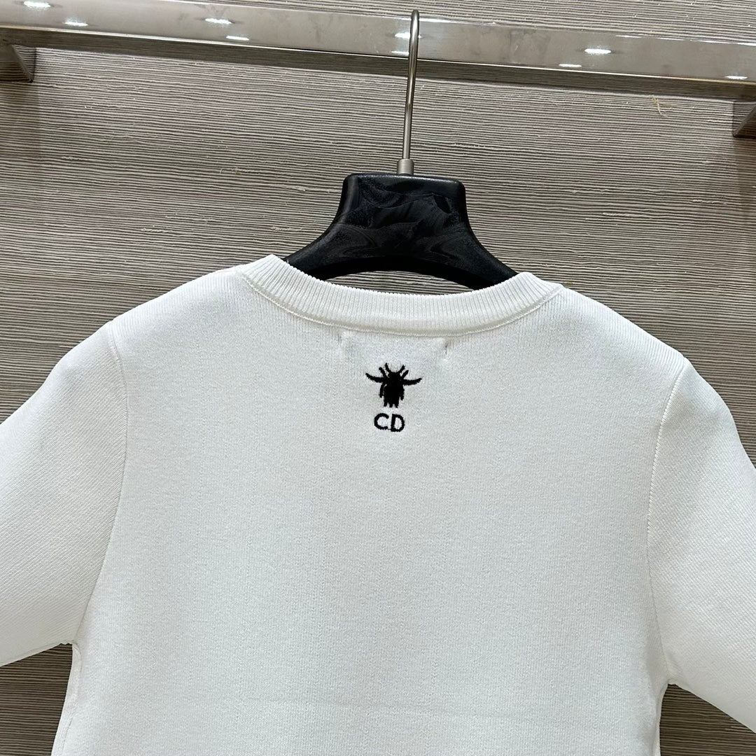 CD 25 Snake Embroidery Knitted Short-sleeved Top White Tencel Wool