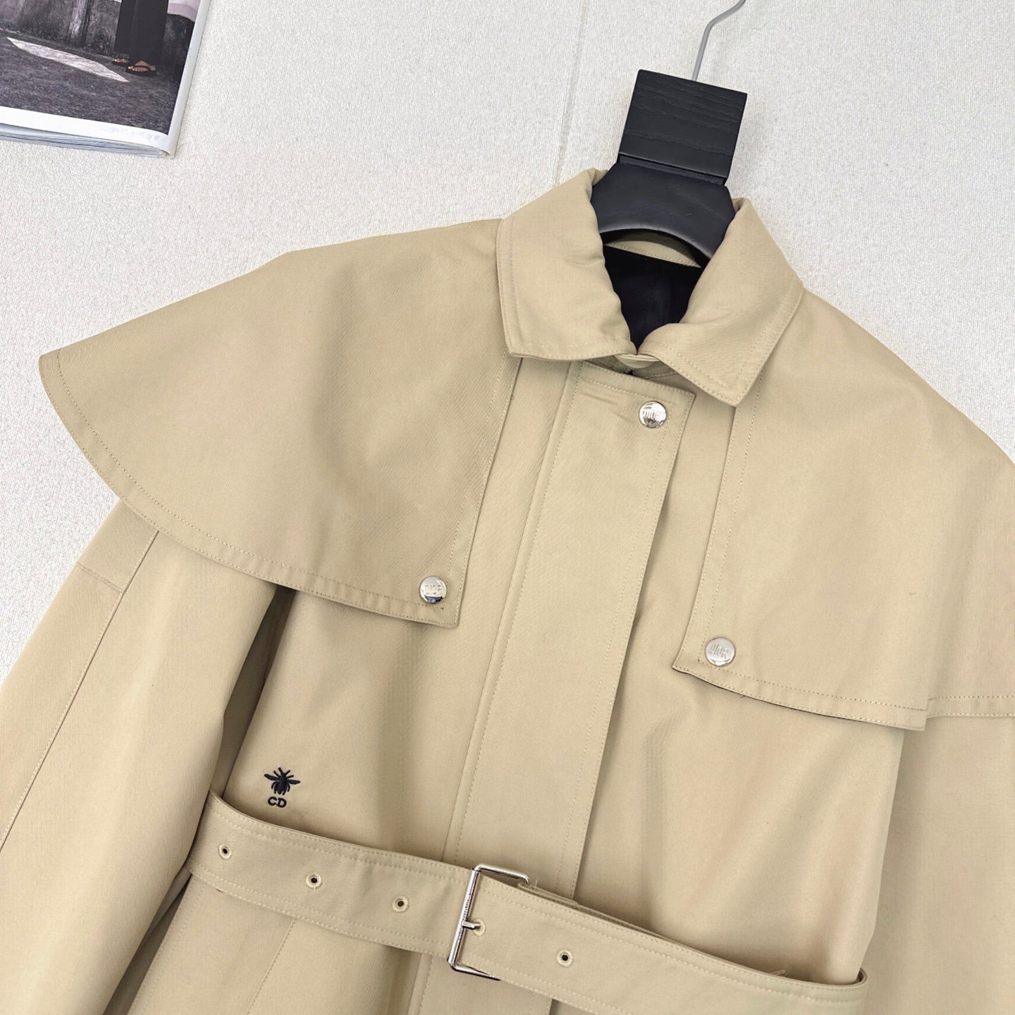 CD 25 Waist Tie Short Jacket Beige Cotton Cashmere