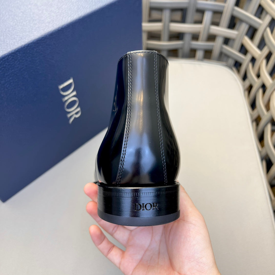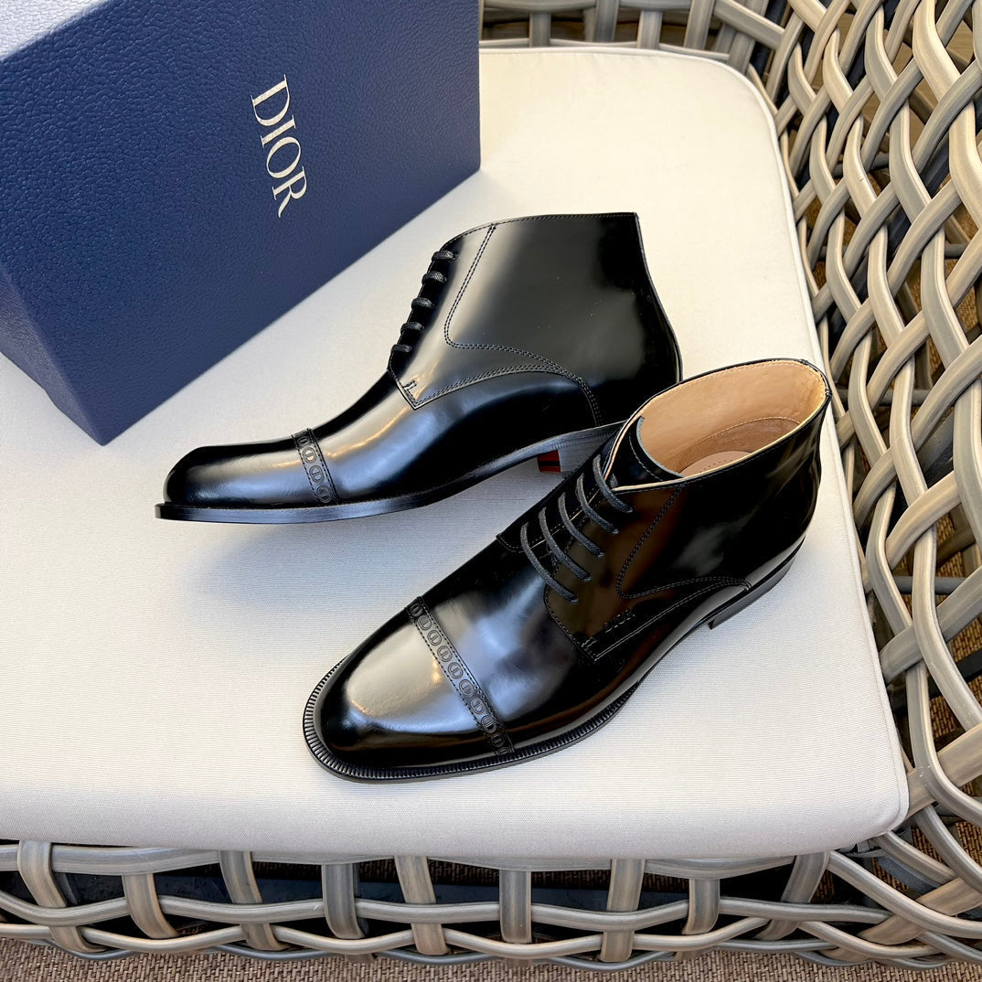 CD HOMME LACE-UP ANKLE BOOT GLOSSY BLACK CALFSKIN
