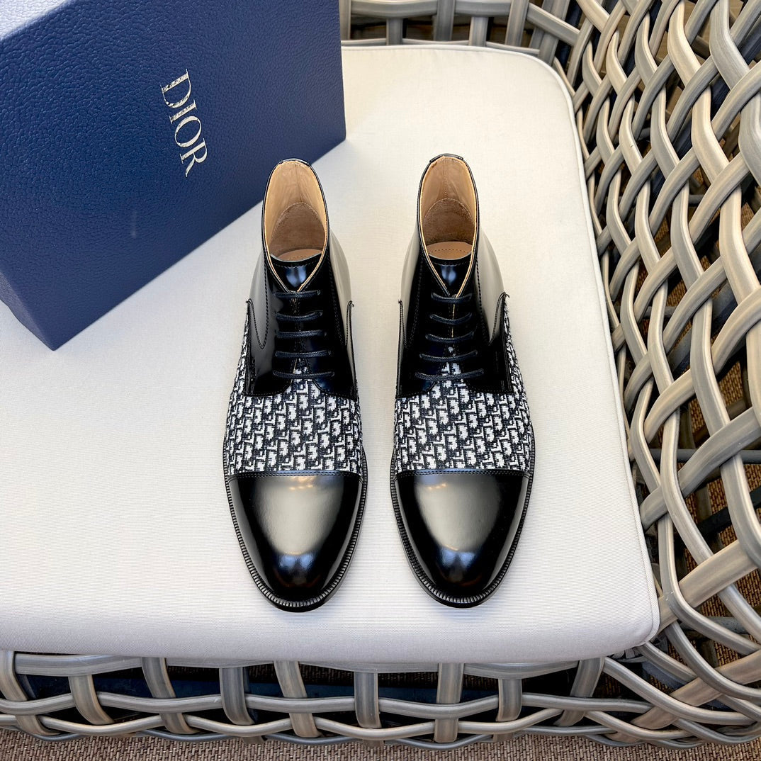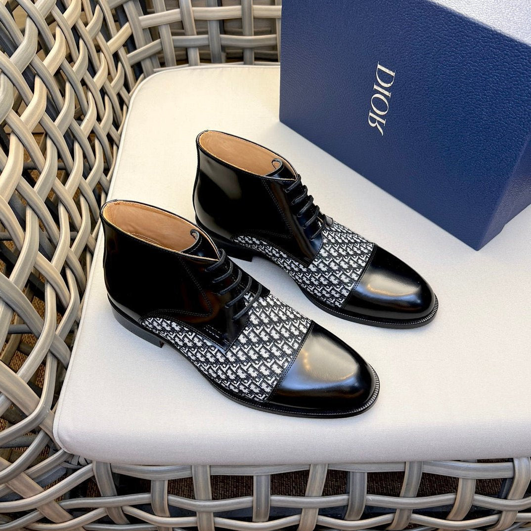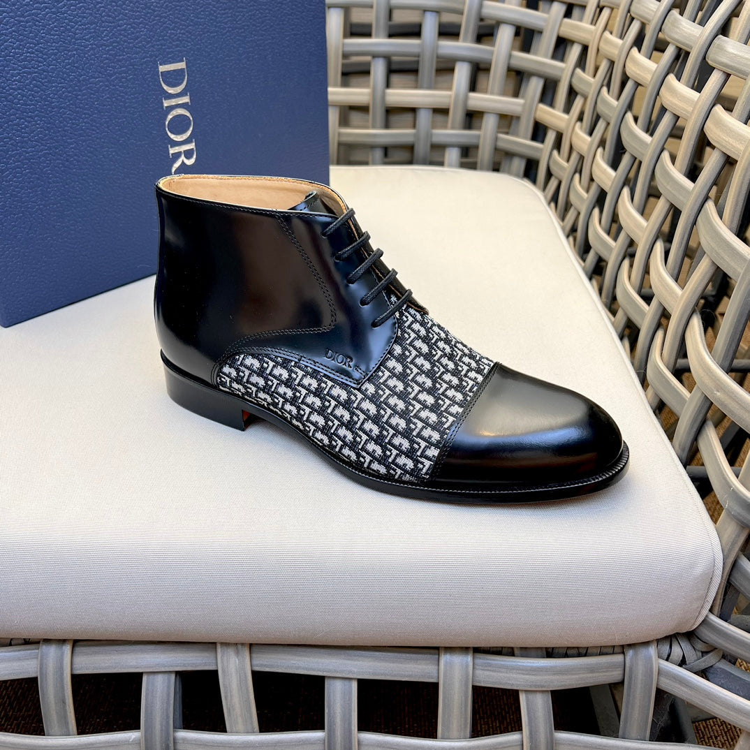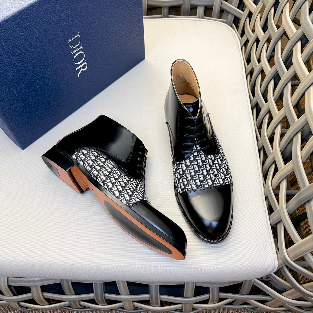 CD HOMME LACE-UP ANKLE BOOT BLACK EMBOSSED CALFSKIN