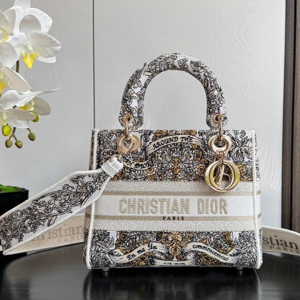 CD Lady Bag 20cm Black Lambskin Black White Canvas