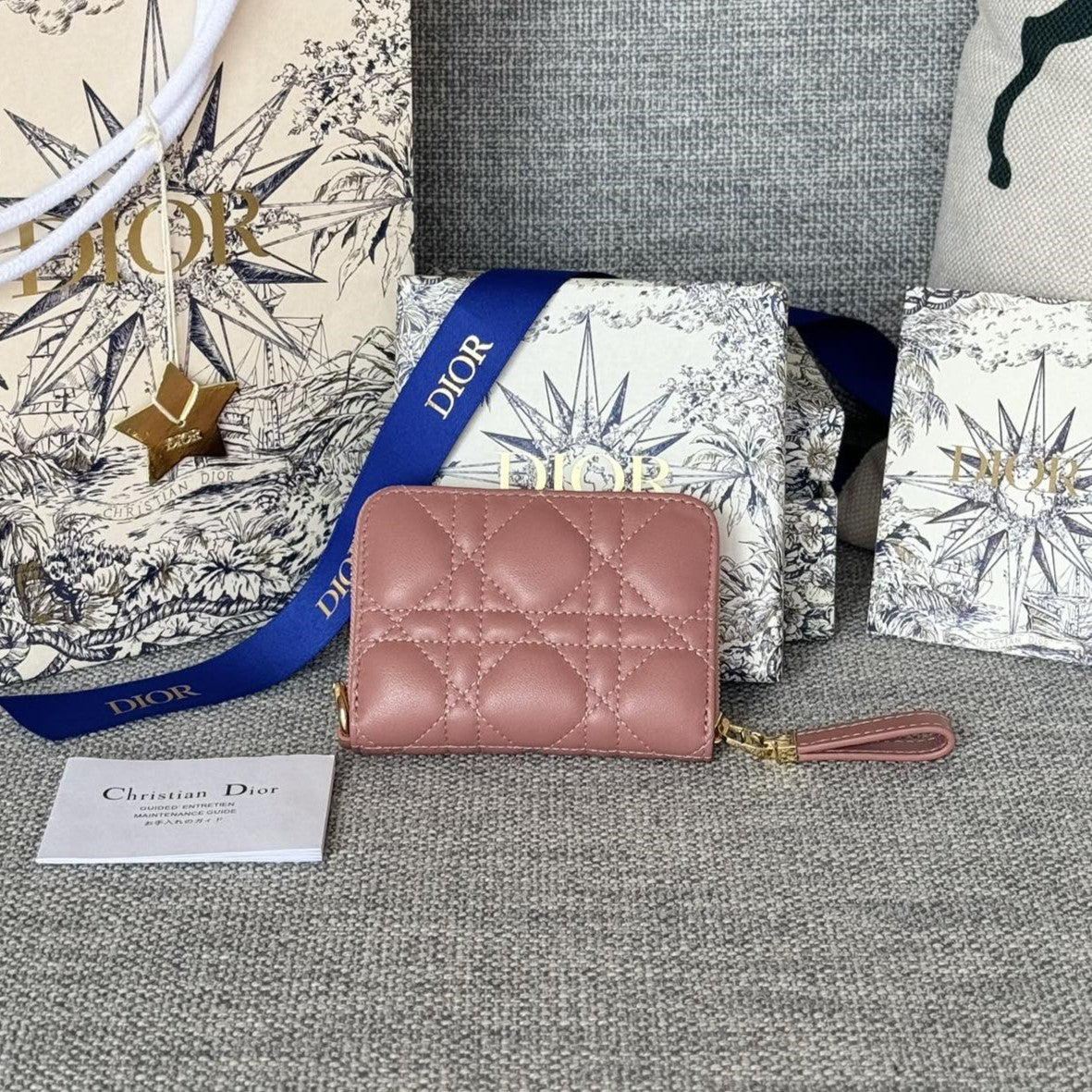 CD Logo Caro 11cm Compact Wallet Pink Calfskin