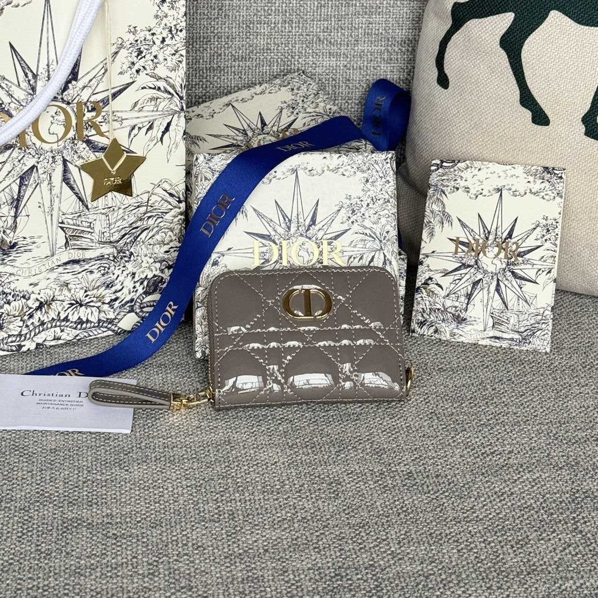CD Logo Caro 11cm Compact Wallet Shiny Dark Beige Calfskin