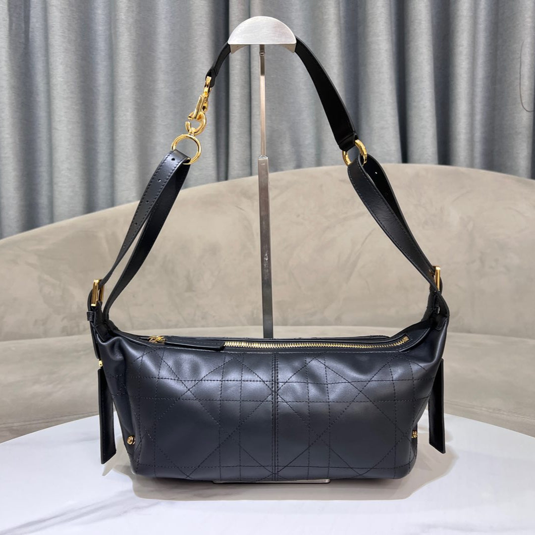 CD VOYAGE handbag 28 Black Crinkled Calfskin