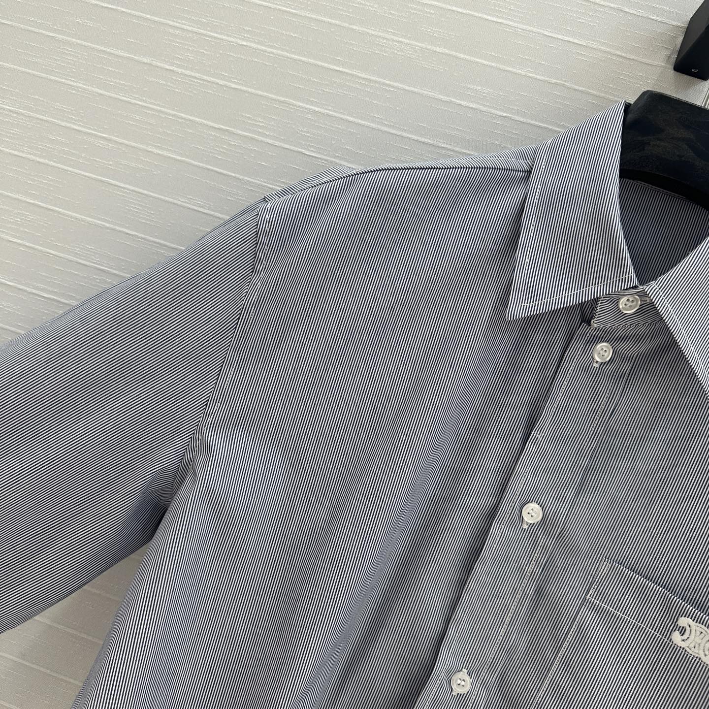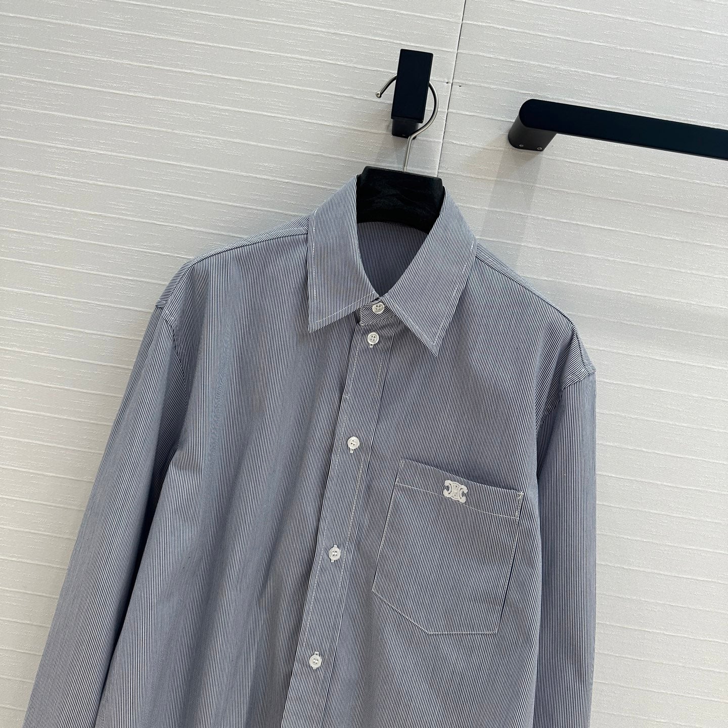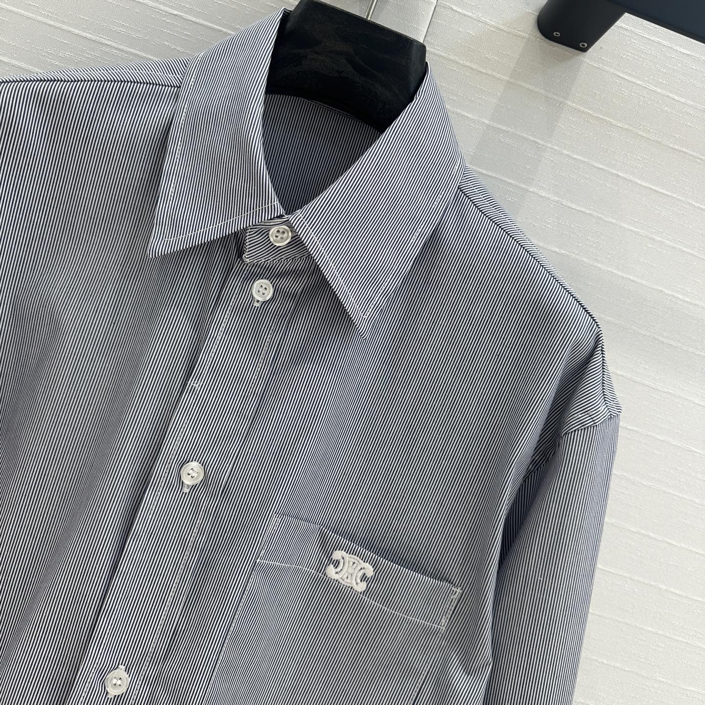 Celine 25 Striped Long-sleeved Shirt White Cotton 217877