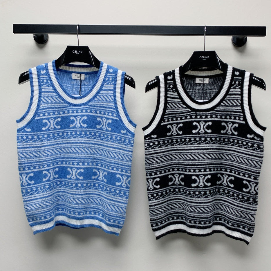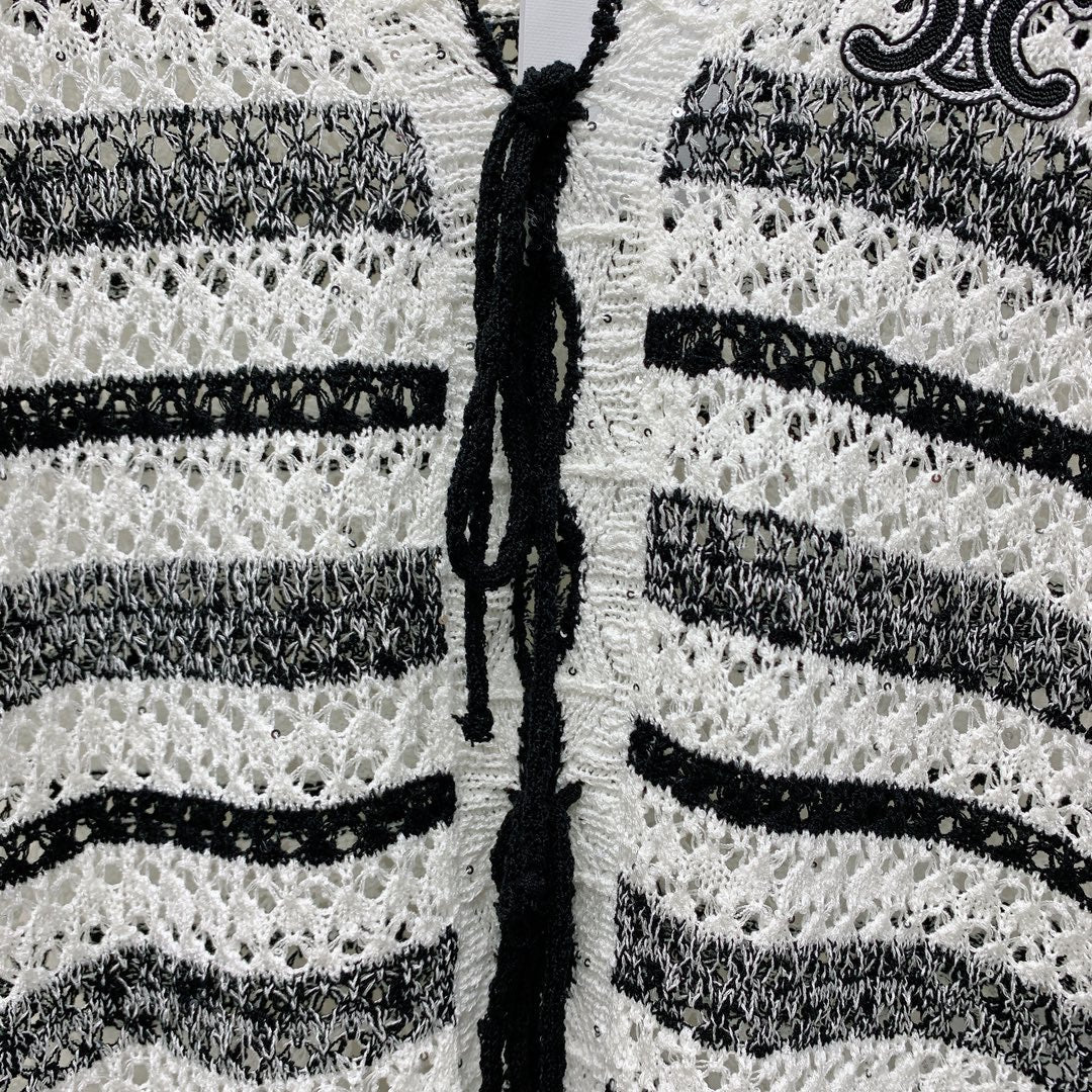 Celine 25 Striped Sleeveless Vest Black White Wool Polyester 277571