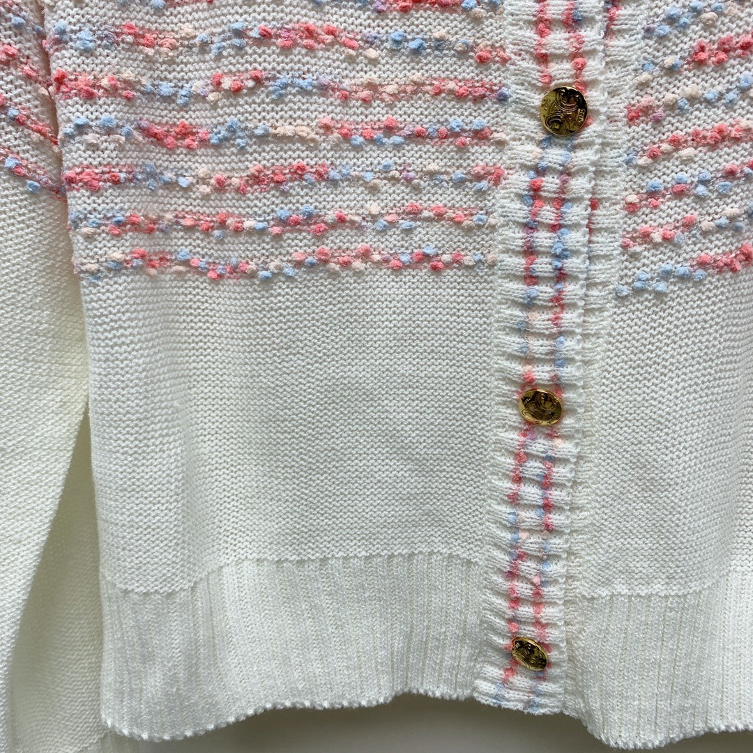 Celine 25 Striped Cardigan White Wool Polyester 281502