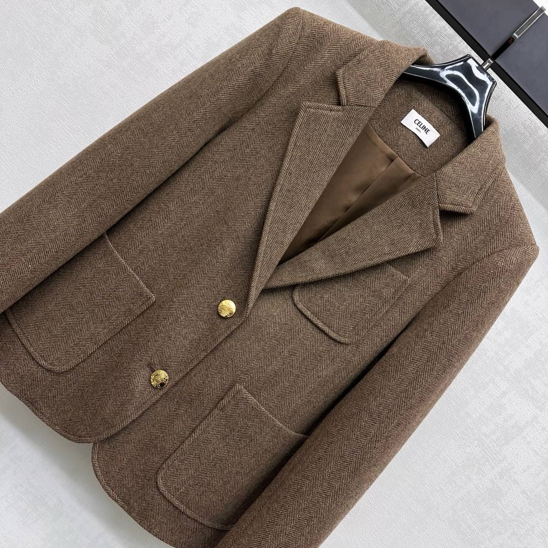 Celine 25 Round Neck Arc de Triomphe Jacket Black Brown Cashmere