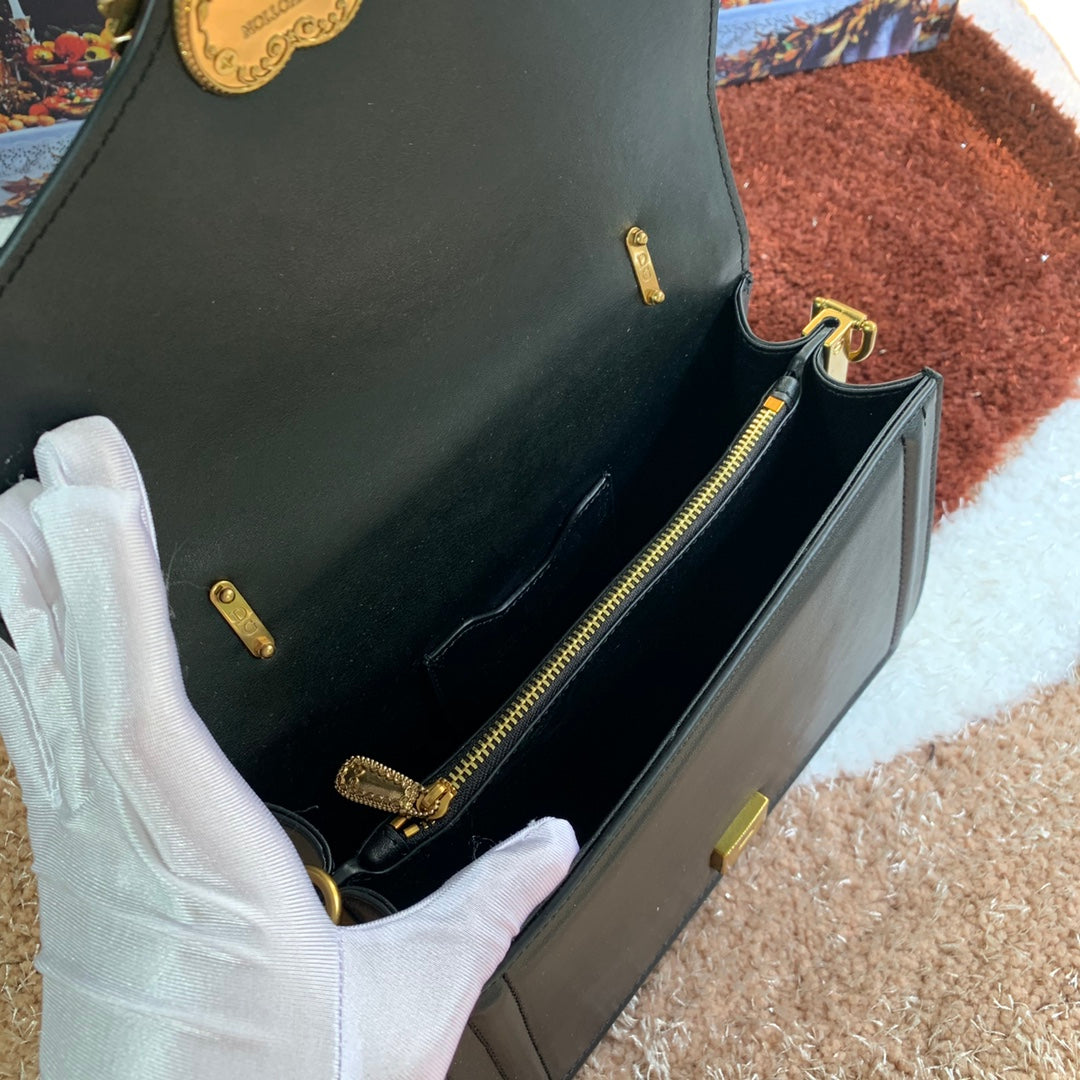 DIAMOND HORSEBIT SHOULDER BAG 24 IN BLACK CALFSKIN GOLD HARDWARE