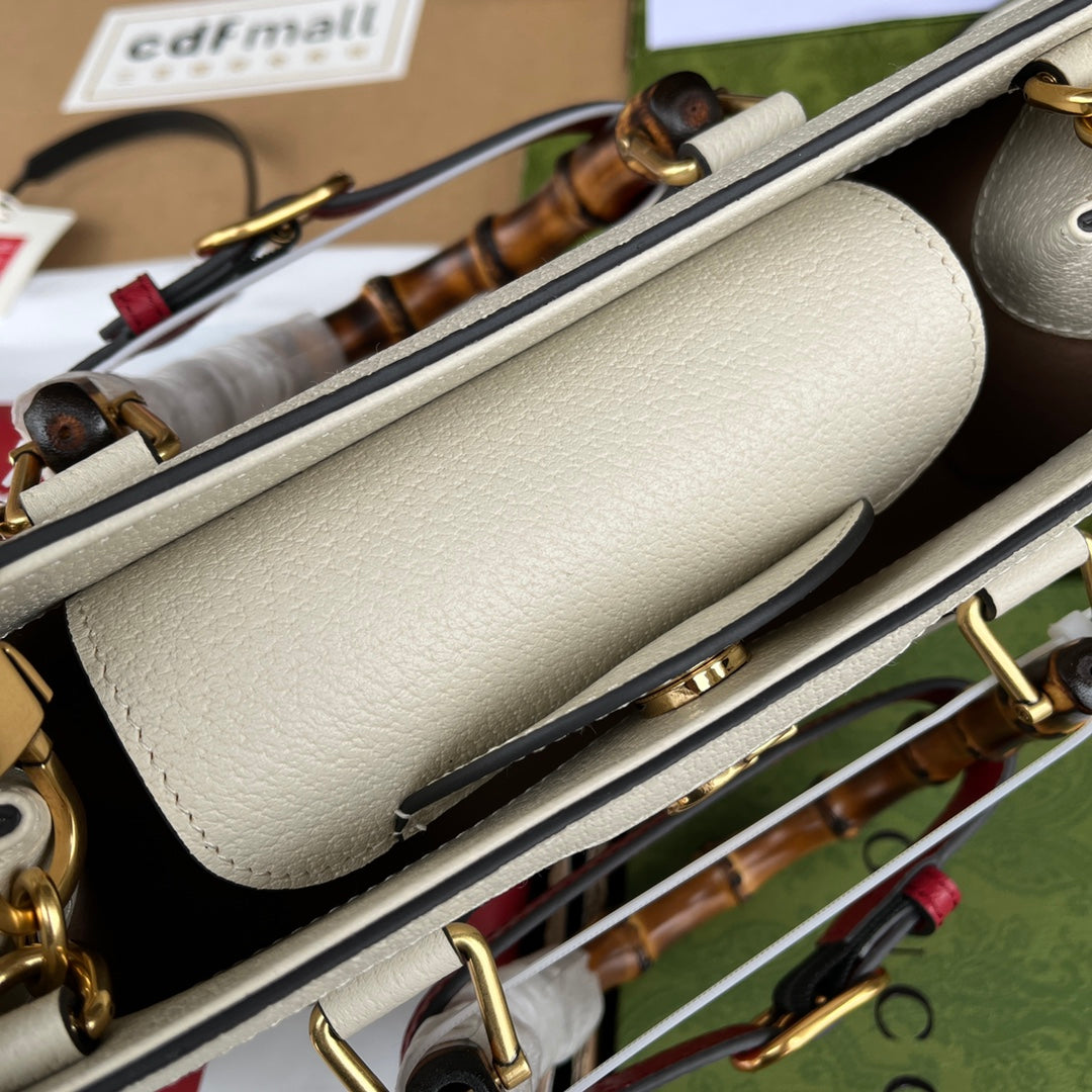 DIANA TOTE BAG 19 IN WHITE LAMBSKIN WITH BAMBOO HANDLE