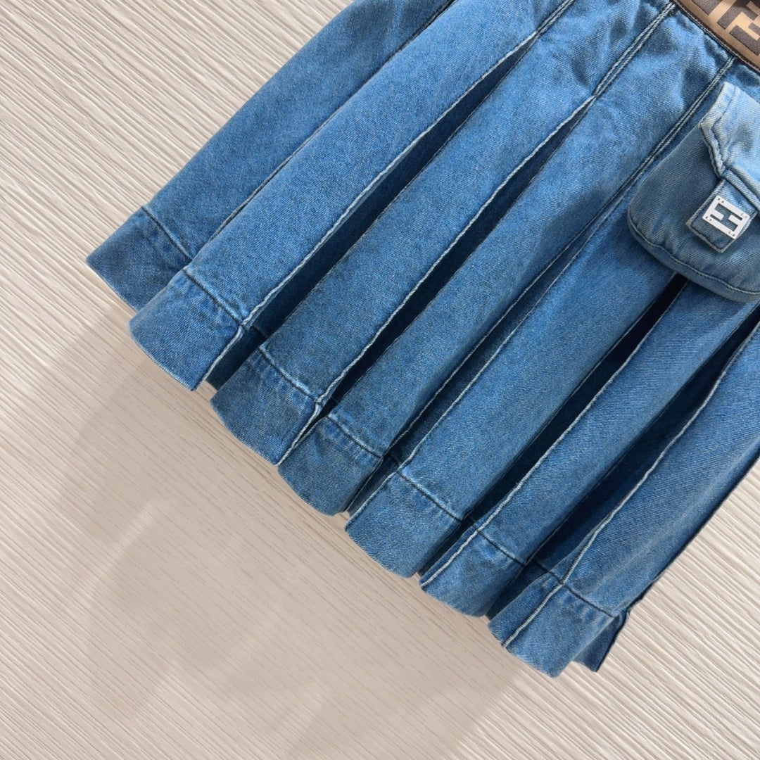 Fendi 2025 Pleated Denim Skirt Blue Cotton