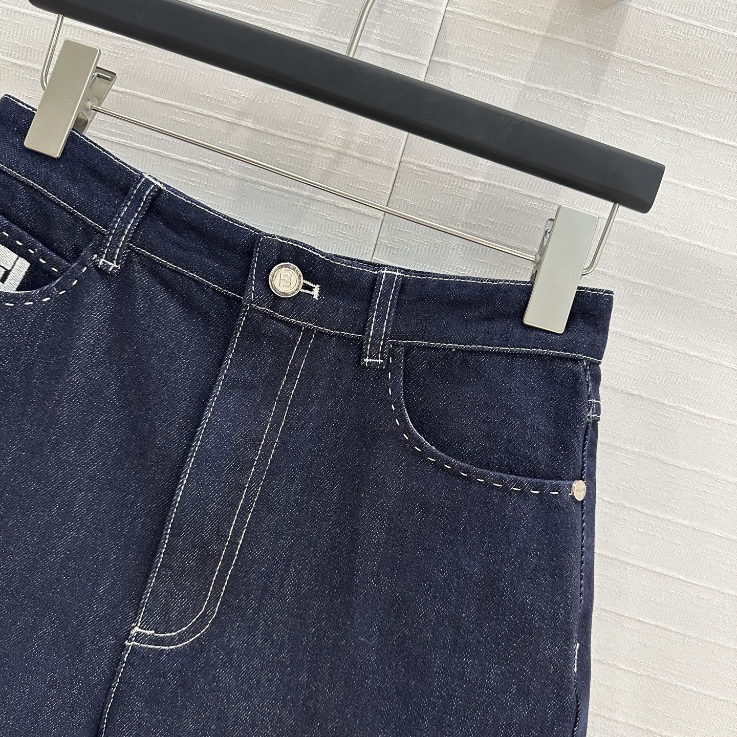Fendi 25 Colorful Yarn Embroidered Letter Jeans Blue Cotton