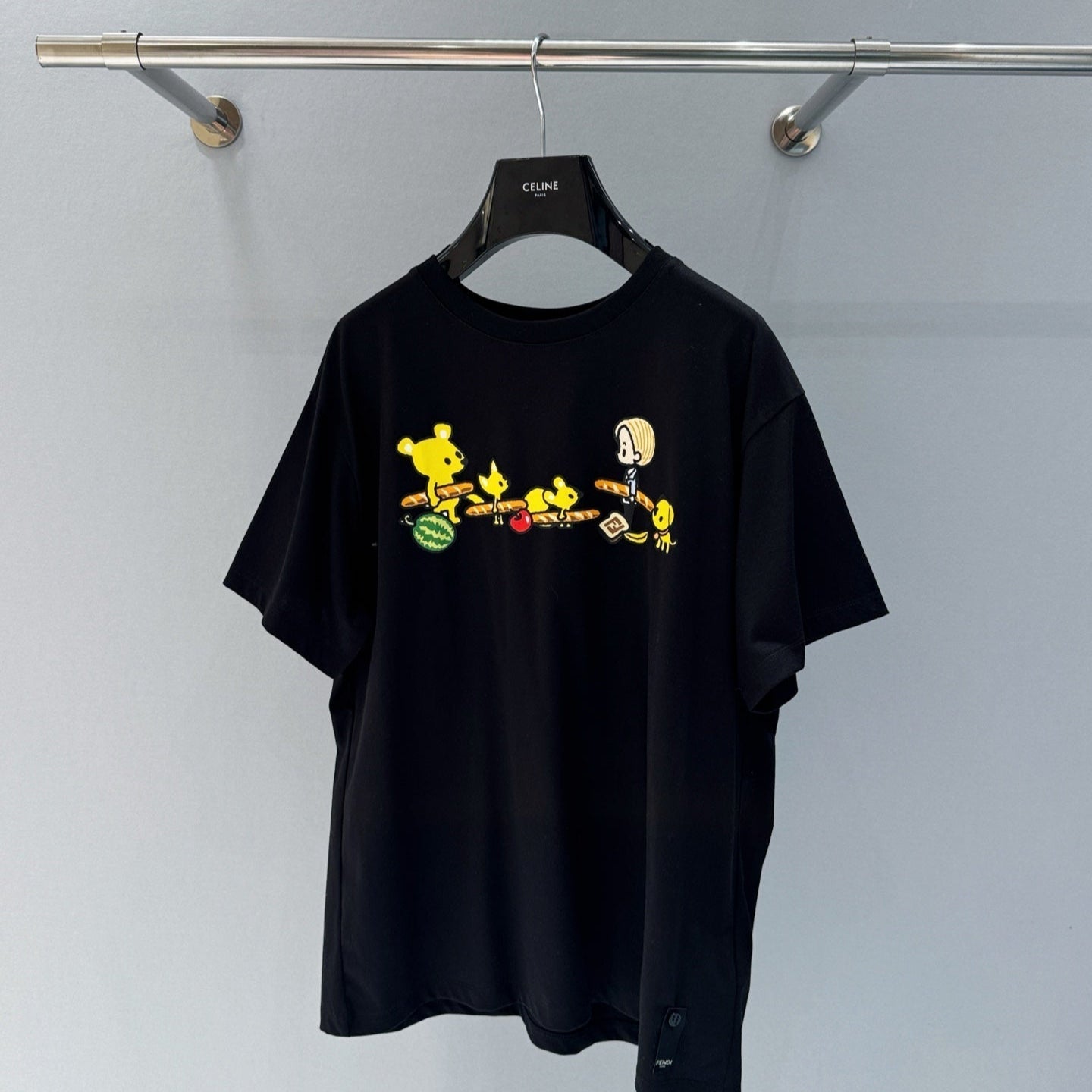 Fendi 25 Baguette Print Round Neck Short Sleeves Black Cotton