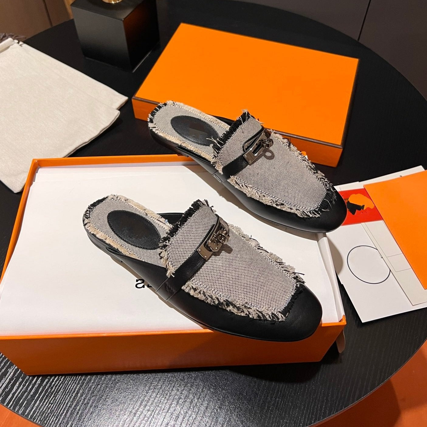 0Z MULE BLACK CALFSKIN WITH PATTERN