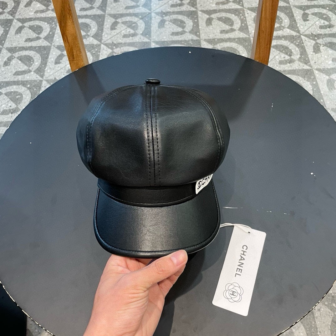 BAKER BOY CAP IN BLACK CALFSKIN 420946