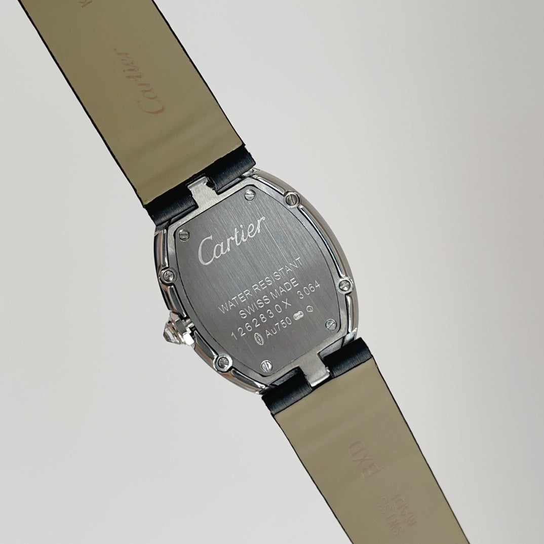 Baignoire 23mm Silver Case Diamond Bezel Black Leather Strap
