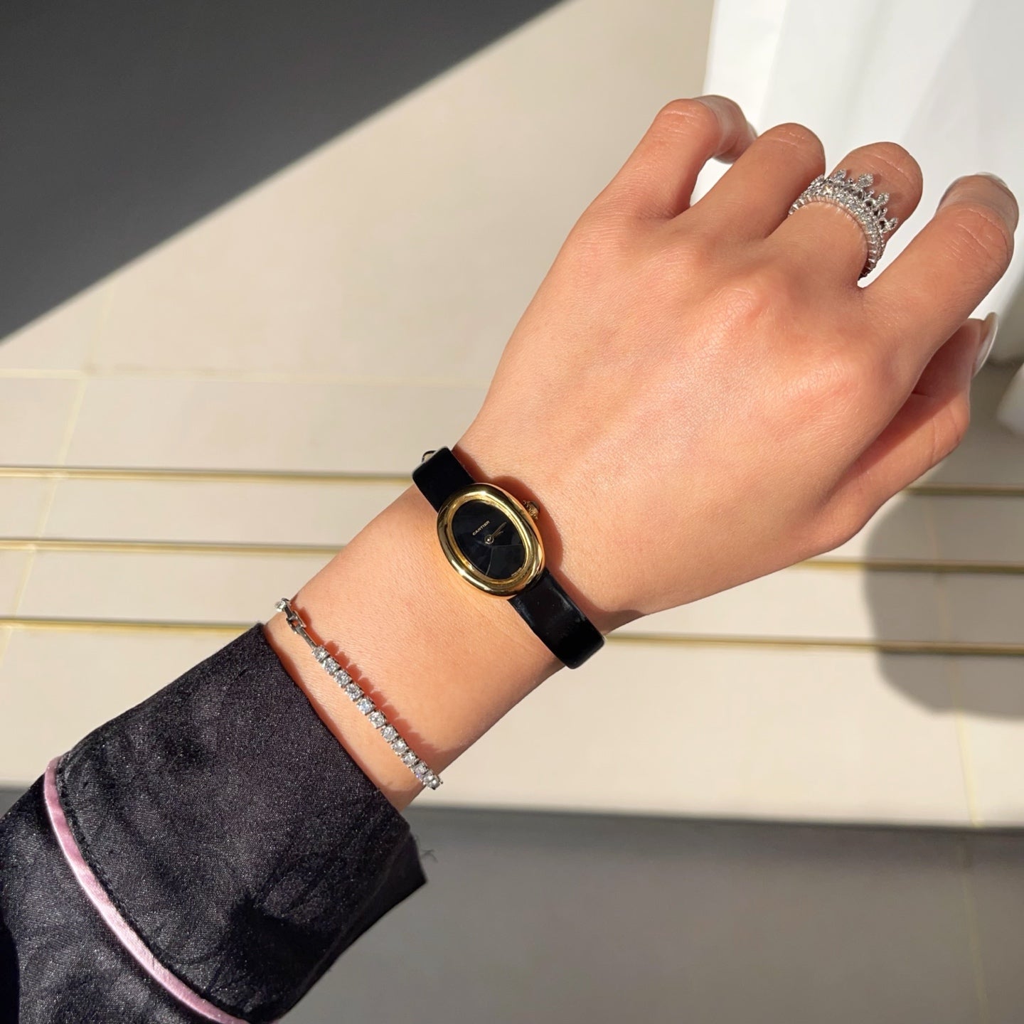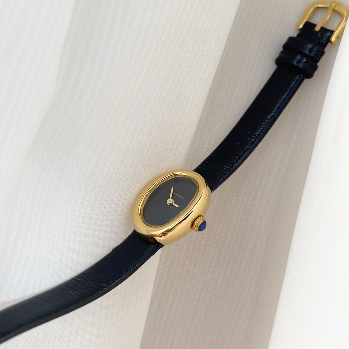 Baignoire 28mm Pink Gold Diamond Case Black Silk Leather