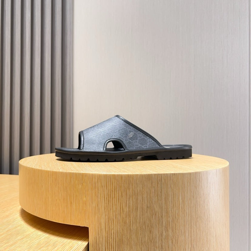 GG Men's Slide Black Brown Canvas Cowhide 542946