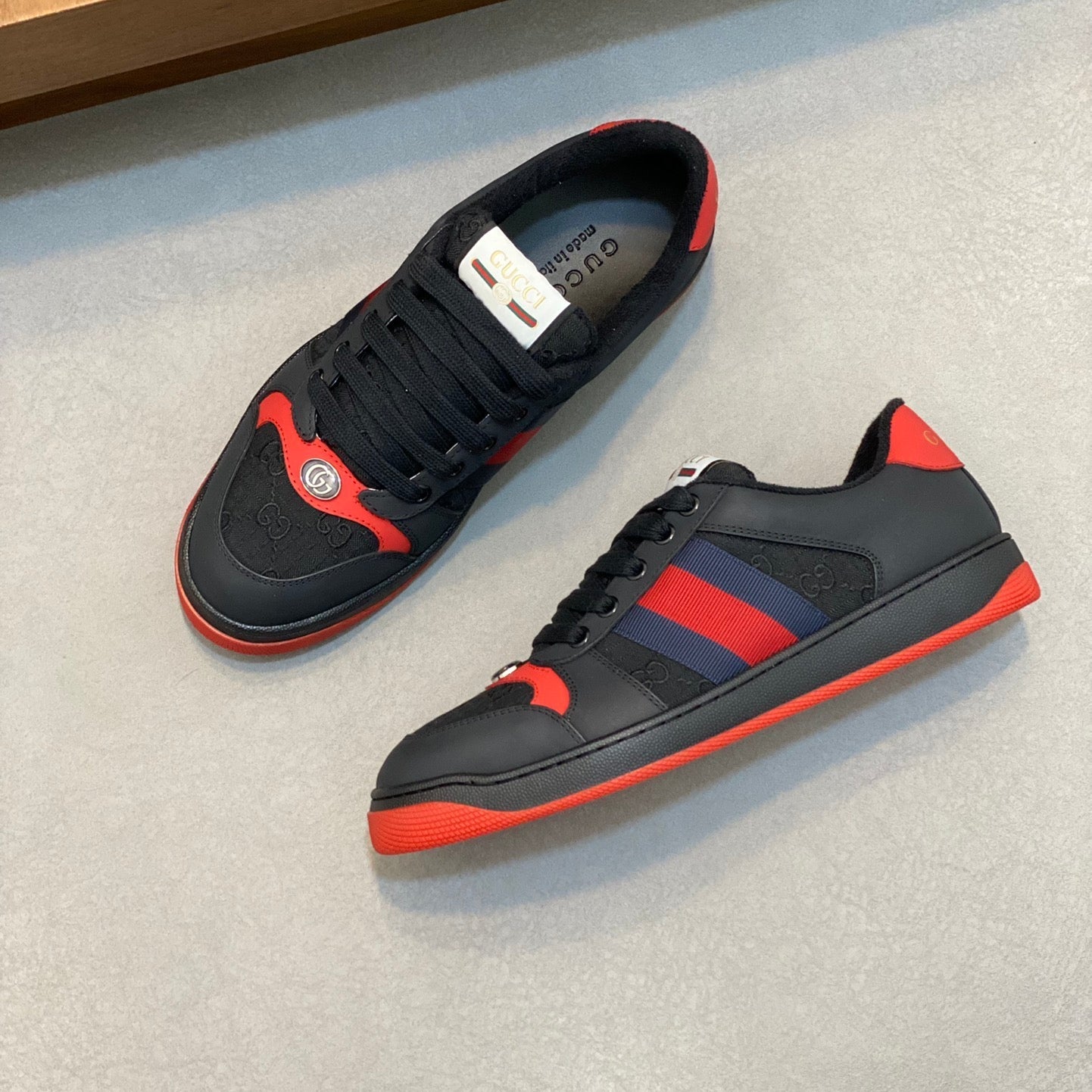 GG Men's Screener Sneaker Black White Calfskin 523582